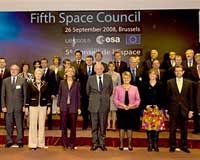 Paris, France (ESA) Sep 29, 2008 Ministers in charge of space activities within ESA and European Union Member States have met in Brussels for the fifth Space Council. The Space Council was jointly chaired by French Minister of Higher Education and Research Valerie Pecresse, on behalf of the EU Competitiveness Council, and Maria Van Der Hoeven, Dutch Minister of Economic Affairs and current Chair of the ESA Council at ministerial level. Gunter Verheugen, Vice President of the European Commission and Commissioner for Enterprise and Industry, and Jean-Jacques Dordain, ESA Director General, also took part. Commenting on the outcome, Maria Van Der Hoeven said: "The Space Council has welcomed the progress made in the implementation of the European Space Policy over the last 16 months, and has identified further priority areas for its implementation. It is important that we maintain momentum. In particular, Europe needs to ensure that it delivers the flagship satellite applications programmes Galileo and Kopernikus. The Council has set out the requirements for an action plan on Kopernikus implementation, which should include sustainable funding, operational service delivery mechanisms, an approach for the overall governance of the system and of all its components and a comprehensive data policy. We will then address new priorities from a position of strength. Europe now has a stable foundation for its space activities, supported as they are by the three legs of the European Space Agency, the Europan Union and their respective Member States. This will be reinforced not only by the meeting but also by the ESA Council at ministerial level, which is due to take place on 25-26 November in The Hague." The Space Council adopted a Resolution which highlights the significant advances in the two initial priorities and flagship space programmes of the European Space Policy, Galileo and Kopernikus (**). The Space Council identified the need to draw up a plan that provides for sustainable operational funding for Kopernikus and welcomed the proposal by the European Commission to start this with a new preparatory action in the preliminary budgets for 2009. As to the R and D phases of the programme, the Council welcomed the ESA Director General's intention to submit to the Ministers of its Member States, gathering in Council in The Hague in November of this year, a proposal for the subscription of the second segment of the Kopernikus Space Component that will make it possible to complete the development of most of the initial series of Sentinel satellites. Regarding horizontal, cross-cutting aspects of the European Space Policy, the Space Council identified the need to further promote international cooperation in such domains as solar system exploration, Earth environment and sustainable development. The Resolution also addressed the need to strengthen existing mechanisms for coordinating European expertise and investments in space as well as to set up mechanisms to improve synergies between civil and defence space programmes, respecting the specific requirements of both sectors, including their decision-making competences and finance schemes. This Space Council meeting has also moved to widen the scope of and establish new priorities for the European Space Policy. Four additional priority areas have been identified: space and climate change, contributions of space to the Lisbon Strategy, space and security and space exploration. The Space Council welcomed in particular the joint preparation by ESA and Eumetsat of an innovative programme proposal for Meteosat Third Generation, which will also contribute to Kopernikus, to the monitoring of climate and thus to the detection of global climate change. The Space Council recognised the substantial contribution of space, as a high tech R and D domain and through the economic exploitation of its results, to attaining the Lisbon goals and fulfilling the economic, educational, social and environmental ambitions of Europe and the expectations of its citizens. The development of services that seamlessly integrate navigation, observation and communication satellite systems and combine them with terrestrial networks will be promoted and accelerated. On space and security, the Space Council highlighted the need to define ways and means to improve the coordination between civil and defence programmes through a structured dialogue among European institutional actors, including ESA. It also noted the intention of ESA's Director General to submit a proposal for a programme on Space Situational Awareness, for subscription at the ESA Council at ministerial level in November. This programme will set the basis towards the development of a European capability for the monitoring and surveillance of the space infrastructure of Europe and of space debris. On space exploration, in the wake of ESA's successful Columbus and Automated Transfer Vehicle missions to the International Space Station, the Space Council affirmed that Europe is committed to playing a significant role in the international enterprise to explore the Solar System and to develop a deep understanding of the conditions required for life to prosper beyond our planet. It welcomed the European Commission proposal to organise a high level political conference, opening a public debate on the role that Europe ought to play in the pursuit of the long-term global vision for space exploration. At the end of the 5th Space Council, ESA's Director General Jean-Jacques Dordain said: "Europe's Ministers have renewed the momentum behind the European Space Policy. The European Commission and ESA are committed to delivering the flagship application programmes Galileo and GMES -now known as Kopernikus -, which are crucial to the economic and environmental well-being of Europe and elsewhere. "Beyond these first priorities, Ministers have given us clear orientations as to their next priorities. It is particularly significant that they have s