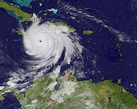 Kingston (AFP) Aug 19, 2007 Hurricane Dean unleashed the full force of its 230 kilometers (145 miles) per hour winds on Jamaica Sunday, after leaving a trail of destruction in the Caribbean where it killed at least five people. "Take this hurricane threat very seriously," Prime Minister Portia Simpson Miller said in a national broadcast late Saturday, trying to convince people refusing to leave their homes to evacuate the most vulnerable areas along the southern coast. The category four hurricane was whipping up giant surf and dumping inches of rain on the island. Roads were blocked by fallen trees and flooded in the eastern parts of the island, with power cuts affecting thousands of homes. "The sea has dumped debris onto the roads," Portland parish Mayor Bobbie Montague said as the storm surged by Jamaica's southern coast, on course for the nearby Cayman Islands, Mexico and possibly Texas in coming days. The US National Hurricane Center in its latest report at 2100 GMT placed Dean 50 miles (80 kilometers) from the Jamaican capital Kingston and moving along at about 20 miles (32 kilometers) an hour. Packing winds of up to 145 miles (230 kilometers) an hour, Hurricane Dean "has the potential to become a category five hurricane in the northwestern Caribbean sea tomorrow (Monday)" -- the top strength in the scale. "Preparations to protect life and property in Jamaica should already have been completed. Preparations in the Cayman Islands should be rushed to completion," the center's latest hurricane report said. It added Dean could unleash as much as 20 inches of rain on Jamaica in the coming hours, and warned waves could surge seven to nine feet (two to three meters) above normal tide levels. Jamaica's airports were shut Saturday, and hundreds of people have packed into the 1,000 shelters opened up by the government around the island amid bitter memories of Hurricane Ivan which killed 14 people in 2004. Prime Minister Miller called on all off-duty police officers, firefighters and prison warders to report for work, while the electricity provider was shutting down the national grid as a safety measure. The Jamaica Public Service Company said more than 135,000 customers were without power. There were also fears for some 17 people, believed to be Spanish divers, who had refused to leave the small sandbank of Pedro Cays, some 50 miles (80 kilometers) south of Jamaica, lying directly in Dean's path. Miller called on all political parties to forget about national elections on August 27 and "put all differences aside as a national emergency is on us ... the safety and wellbeing of people ... must be our only focus at this time." Mexico was meanwhile evacuating some 90,000 tourists from Cancun and other islands of the "Mayan Riviera," as well as some 13,000 workers on more than 140 of its oil platforms in the Gulf of Mexico, with Dean set to slam into the Yucatan peninsula late Monday. A leading risk modeling company, California-based Eqecat Inc., on Sunday estimated initial losses in the Lesser Antilles islands and Jamaica at between 1.5 billion and three billion dollars. Hurricane Dean earlier brushed past Haiti, lashing it with heavy rain and gale-force winds. Two people were killed in Haiti's southeastern town of Moron and southern Tiburon, and four people caught on a sailing boat were injured, Haitian officials said. Haitian Environment Minister Jean Marie Claude Germain, who was heading to the devastated areas, told AFP there had been huge damage to agricultural plantations because the trees had been cut down. "We are beginning to see the need to put in place policies to reforest our country and find an alternative to burning wood, which is one of the main causes of the deterioration of the environment," he said. More than 1,000 people were evacuated from low-lying areas in Haiti, one of the world's poorest countries. Two people were also killed in the French territory of Martinique, while authorities in the Dominican Republic, where a 16-year-old boy was killed when he was swept away by huge waves, warned of the danger of landslides. The National Emergency Committee there also said that 1,580 people had been evacuated and some 316 houses had been damaged, many of them severely. In Cuba just to the north of Jamaica, authorities had evacuated some 150,000 people from six eastern provinces to save them from possible flooding. Community Email This Article Comment On This Article Related Links Bringing Order To A World Of Disasters When the Earth Quakes A world of storm and tempest