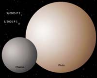Astronomers using the Hubble Space Telescope discovered a fourth moon orbiting the icy dwarf planet Pluto. The tiny, new satellite - temporarily designated P4 - was uncovered in a Hubble survey searching for rings around the dwarf planet. The new moon is the smallest discovered around Pluto. It has an estimated diameter of 8 to 21 miles (13 to 34 km). By comparison, Charon, Pluto's largest moon, is 648 miles (1,043 km) across, and the other moons, Nix and Hydra, are in the range of 20 to 70 miles in diameter (32 to 113 km). "I find it remarkable that Hubble's cameras enabled us to see such a tiny object so clearly from a distance of more than 3 billion miles (5 billion km)," said Mark Showalter of the SETI Institute in Mountain View, Calif., who led this observing program with Hubble. The finding is a result of ongoing work to support NASA's New Horizons mission, scheduled to fly through the Pluto system in 2015. The mission is designed to provide new insights about worlds at the edge of our solar system. Hubble's mapping of Pluto's surface and discovery of its satellites have been invaluable to planning for New Horizons' close encounter. "This is a fantastic discovery," said New Horizons' principal investigator Alan Stern of the Southwest Research Institute in Boulder, Colo. "Now that we know there's another moon in the Pluto system, we can plan close-up observations of it during our flyby." The new moon is located between the orbits of Nix and Hydra, which Hubble discovered in 2005. Charon was discovered in 1978 at the U.S. Naval Observatory and first resolved using Hubble in 1990 as a separate body from Pluto. The dwarf planet's entire moon system is believed to have formed by a collision between Pluto and another planet-sized body early in the history of the solar system. The smashup flung material that coalesced into the family of satellites observed around Pluto. Lunar rocks returned to Earth from the Apollo missions led to the theory that our moon was the result of a similar collision between Earth and a Mars-sized body 4.4 billion years ago. Scientists believe material blasted off Pluto's moons by micrometeoroid impacts may form rings around the dwarf planet, but the Hubble photographs have not detected any so far. "This surprising observation is a powerful reminder of Hubble's ability as a general purpose astronomical observatory to make astounding, unintended discoveries," said Jon Morse, astrophysics division director at NASA Headquarters in Washington. P4 was first seen in a photo taken with Hubble's Wide Field Camera 3 on June 28. It was confirmed in subsequent Hubble pictures taken on July 3 and July 18. The moon was not seen in earlier Hubble images because the exposure times were shorter. There is a chance it appeared as a very faint smudge in 2006 images, but was overlooked because it was obscured. Hubble is a project of international cooperation between NASA and the European Space Agency. NASA's Goddard Space Flight Center in Greenbelt, Md., manages the telescope. The Space Telescope Science Institute (STScI) in Baltimore conducts Hubble science operations. STScI is operated for NASA by the Association of Universities for Research in Astronomy Inc. in Washington.