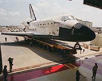 Cape Canaveral FL (SPX) Oct 01, 2007Space shuttle Discovery arrived at Launch Pad 39A at NASA's Kennedy Space Center, resting on the hardstand by 1:15 p.m. The shuttle began its slow 3.4-mile journey to the pad atop the crawler transporter at 6:47 a.m., leaving the Vehicle Assembly Building in the early morning darkness. Also at the pad is the payload canister containing the Harmony module that the STS-120 crew will deliver to the International Space Station. Harmony will be installed in Discovery's payload bay as launch preparations continue at the pad. |
