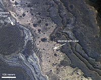 Pasadena CA (SPX) Oct 29, 2008 NASA's Mars Reconnaissance Orbiter has observed a new category of minerals spread across large regions of Mars. This discovery suggests that liquid water remained on the planet's surface a billion years later than scientists believed, and it played an important role in shaping the planet's surface and possibly hosting life. Researchers examining data from the orbiter's Compact Reconnaissance Imaging Spectrometer for Mars have found evidence of hydrated silica, commonly known as opal. The hydrated, or water-containing, mineral deposits are telltale signs of where and when water was present on ancient Mars. "This is an exciting discovery because it extends the time range for liquid water on Mars, and the places where it might have supported life," said Scott Murchie, the spectrometer's principal investigator at the Johns Hopkins University Applied Physics Laboratory in Laurel, Md. "The identification of opaline silica tells us that water may have existed as recently as 2 billion years ago." Until now, only two major groups of hydrated minerals, phyllosilicates and hydrated sulfates, had been observed by spacecraft orbiting Mars. Clay-like phyllosilicates formed more than 3.5 billion years ago where igneous rock came into long-term contact with water. During the next several hundred million years, until approximately 3 billion years ago, hydrated sulfates formed from the evaporation of salty and sometimes acidic water. The newly discovered opaline silicates are the youngest of the three types of hydrated minerals. They formed where liquid water altered materials created by volcanic activity or meteorite impact on the Martian surface. One such location noted by scientists is the large Martian canyon system called Valles Marineris. "We see numerous outcrops of opal-like minerals, commonly in thin layers extending for very long distances around the rim of Valles Marineris and sometimes within the canyon system itself," said Ralph Milliken of NASA's Jet Propulsion Laboratory in Pasadena, Calif. Milliken is lead author of an article in the November issue of "Geology" that describes the identification of opaline silica. The study reveals that the minerals, which also were recently found in Gusev Crater by NASA's Mars rover Spirit, are widespread and occur in relatively young terrains. In some locations, the orbiter's spectrometer observed opaline silica with iron sulfate minerals, either in or around dry river channels. This indicates the acidic water remained on the Martian surface for an extended period of time. Milliken and his colleagues believe that in these areas, low-temperature acidic water was involved in forming the opal. In areas where there is no clear evidence that the water was acidic, deposits may have formed under a wide range of conditions. "What's important is that the longer liquid water existed on Mars, the longer the window during which Mars may have supported life," says Milliken. "The opaline silica deposits would be good places to explore to assess the potential for habitability on Mars, especially in these younger terrains." The spectrometer collects 544 colors, or wavelengths, of reflected sunlight to detect minerals on the surface of Mars. Its highest resolution is about 20 times sharper than any previous look at the planet in near-infrared wavelengths. NASA's Jet Propulsion Laboratory manages the Mars Reconnaissance Orbiter mission for NASA's Science Mission Directorate in Washington. Lockheed Martin Space Systems, Denver, is the prime contractor for the project and built the spacecraft. The Applied Physics Laboratory led the effort to build the spectrometer and operates the instrument in coordination with an international team of researchers from universities, government and the private sector. Community Email This Article Comment On This Article Related Links Mars Reconnaissance Orbiter Mars News and Information at MarsDaily.com Lunar Dreams and more