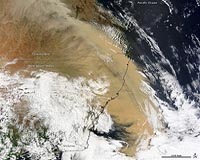 Major dust storm blankets eastern AustraliaSydney (AFP) Sept 23, 2009 The worst dust storm in decades swept across eastern Australia on Wednesday, blanketing Sydney and snarling transport as freak conditions also brought earthquakes, giant hailstones and even a tornado. Gale-force winds dumped thousands of tonnes of red desert dust on Australia's biggest city, shrouding it in an eerie orange haze and coating the iconic Sydney Opera House in a fine layer of ... read more |