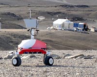 Moffett Field CA (SPX) Jul 21, 2007 Two NASA robots are surveying a rocky, isolated polar desert within a crater in the Arctic Circle. The study will help scientists learn how robots could evaluate potential outposts on the moon or Mars. The robots, K10 Black and K10 Red, carry 3-D laser scanners and ground-penetrating radar. The team arrived at Haughton Crater at Devon Island, Canada, on July 12 and will operate the machines until July 31. Scientists chose the polar region because of the extreme environmental conditions, lack of infrastructure and resources, and geologic features. Additionally, Haughton Crater is geographically similar to Shackleton Crater at the South Pole of the moon. Both are impact craters that measure roughly 12.4 miles in diameter. "We are learning about the awesome potential of human and robot teams," said S. Pete Worden, director of NASA's Ames Research Center in Moffett Field, Calif., where the group conducting the survey is based. "Studying how humans and robots can maximize scientific returns in sites such as Devon Island will prepare us to walk on the moon and Mars." NASA is planning to send astronauts back to the moon by 2020. Prior to establishing a lunar outpost, the agency must conduct detailed surveys at a variety of locations to produce maps, look for minerals and water, and learn other details. NASA plans to accomplish its surveys with an automated orbiting spacecraft, not a robotic lander, but the agency still has a keen interest in advancing the laser scanning technology. Most of the lunar sites are on harsh terrain and in permanently shadowed areas. It is not unusual for site surveys to require thousands of measurements and hundreds of hours to complete. A robot can reduce mission cost and improve mission effectiveness by allowing ground control to conduct surveying tasks. "A typical scenario involves multiple rovers autonomously surveying a region while humans supervise and assess data from a remote location," said Terry Fong, director of the Intelligent Robots Group at Ames. The robots are using different techniques than the goal-directed traverses and isolated sampling tasks that Mars scientific rovers have used to explore the Red Planet. K10 Black and K10 Red are using a mix of information previously obtained by aerial and satellite imaging and data that the robot survey team is gathering. The 3-D laser scanner can map topographic features as far as 3,280 feet away. The ground-penetrating radar, which NASA's Jet Propulsion Laboratory in Pasadena, Calif., developed, can map below ground as deep as 16.4 feet. "The robots are covering the area in lawnmower-like paths at human walking speeds to systematically map above and below ground," said Fong. The practice survey in Haughton Crater is taking place at an area called Drill Hill. The robots are covering approximately 120 acres of terrain. Researchers are commanding the robots remotely from the Haughton-Mars base camp more than two miles away from Drill Hill. The robots navigate using the Global Positioning System, stereo cameras, laser scanners and sun trackers. Each of the four-wheel-drive machines weighs 165 pounds and can carry a payload up to 110 pounds. A key objective of the Drill Hill survey is to test the instruments and software on the robots as well as the equipment and software that humans will use at lunar outposts and ground control to supervise the robots. Engineers at NASA's Johnson Space Center in Houston will assess advanced robot driving techniques using a multi-screen cockpit. Ames will test software that makes high-resolution maps for interactive display in 3-D. Community Email This Article Comment On This Article Related Links Haughton 2007 Mars News and Information at MarsDaily.com Lunar Dreams and more