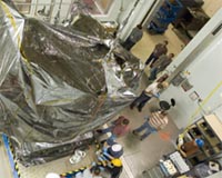 Greenbelt MD (SPX) Aug 01, 2008 NASA's Lunar Reconnaissance Orbiter, also known as LRO, has completed the first round of environmental testing at NASA's Goddard Space Flight Center in Greenbelt, Md. These tests ensure the spacecraft is prepared for its mission to collect the highest resolution images and most comprehensive geological data set ever returned from the moon. The objective of the mission is to map the lunar surface in preparation for human missions to the moon, which are planned to occur by 2020. The first two tests for the orbiter were the spin test and vibration test. The spin test determines the spacecraft's center of gravity and measures characteristics of its rotation. During vibration testing, engineers checked the structural integrity of the lunar probe aboard a large, shaking table that simulated the rigorous ride the orbiter will encounter during liftoff aboard an Atlas rocket. "It is during lift-off the spacecraft will be under the most stress," said Cathy Peddie, deputy project manager for LRO at Goddard. "We want to ensure the Lunar Reconnaissance Orbiter can withstand the extreme conditions experienced during launch." The next hurdle for the orbiter is approximately four days of acoustics testing during which the bagged spacecraft is placed near multistory, wall-sized speakers that simulate the noise-induced vibrations of launch. Following acoustics testing, the spacecraft will undergo a daylong test that simulates the orbiter's separation from the rocket during launch. In late August, the spacecraft will begin approximately five weeks of thermal vacuum testing, which duplicates the extreme hot, cold and airless conditions of space. During the test, engineers will operate the orbiter and conduct simulated flight operations while the spacecraft is subjected to the extreme temperature cycles of the lunar environment. By the end of 2008, the Lunar Reconnaissance Orbiter will be transported to NASA's Kennedy Space Center in Florida for final launch preparations. The orbiter and the Lunar Crater Observation and Sensing Satellite, a mission to impact the moon in search of water ice, are scheduled to launch atop an Atlas V rocket from Cape Canaveral Air Force Station in Florida. The launch window opens Feb. 27, 2009, and continues through the end of March. The seven science instruments aboard the Lunar Reconnaissance Orbiter will develop highly detailed maps of the lunar surface that provide data about lunar topography, surface temperature, lighting conditions, mineralogical composition, and abundance of natural resources. Information from the robotic spacecraft will be used to select safe landing sites and assess potential outpost locations for future human missions to the moon. The spacecraft also will provide valuable information about the lunar radiation environment, enabling the development of effective mitigation strategies for human explorers. The Lunar Reconnaissance Orbiter will be in a polar orbit, unlike the Apollo missions that focused on gaining science from the area around the moon's equator. The spacecraft will spend at least a year in a low, polar orbit approximately 30 miles above the lunar surface, while the instruments work together to collect detailed information about the lunar environment. Community Email This Article Comment On This Article Related Links Goddard Space Flight Center Mars News and Information at MarsDaily.com Lunar Dreams and more