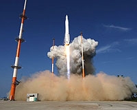 SKorea satellite lost after flawed launch: officialsSeoul (AFP) Aug 26, 2009 A satellite launched by South Korea's first space rocket fell to earth and burnt up after missing its designated orbit, officials said Wednesday. The science and technology ministry said the problem was caused by one of the two fairings which covered the satellite at the rocket's tip. Because one of them did not fall away from the rocket after opening, the rocket could not achieve en ... read more |