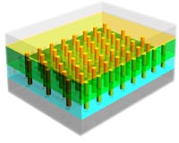 Berkeley CA (SPX) Jul 14, 2009 Researchers at the U.S. Department of Energy's Lawrence Berkeley National Laboratory and the University of California at Berkeley have demonstrated a way to fabricate efficient solar cells from low-cost and flexible materials. The new design grows optically active semiconductors in arrays of nanoscale pillars, each a single crystal, with dimensions measured in billionths of a meter. "To take advantage of abundant solar energy we have to find ways to mass-produce efficient photovoltaics," says Ali Javey, a faculty scientist in Berkeley Lab's Materials Sciences Division and a professor of electrical engineering and computer science at UC Berkeley. "Single-crystalline semiconductors offer a lot of promise, but standard ways of making them aren't economical." A solar cell's basic job is to convert light energy into charge-carrying electrons and "holes" (the absence of an electron), which flow to electrodes to produce a current. Unlike a typical two-dimensional solar cell, a nanopillar array offers much more surface for collecting light. Computer simulations have indicated that, compared to flat surfaces, nanopillar semiconductor arrays should be more sensitive to light, have a greatly enhanced ability to separate electrons from holes, and be a more efficient collector of these charge carriers. "Unfortunately, early attempts to make photovoltaic cells based on pillar-shaped semiconductors grown from the bottom up yielded disappointing results. Light-to-electricity efficiencies were less than one to two percent," says Javey. "Epitaxial growth on single crystalline substrates was often used, which is costly. The nanopillar dimensions weren't well controlled, pillar density and alignment was poor, and the quality of the interface between the semiconductors was poor." Javey devised a new, controlled way to use a method called the "vapor-liquid-solid" process to make large-scale modules of dense, highly ordered arrays of single-crystal nanopillars. Inside a quartz furnace his group grew pillars of electron-rich cadmium sulfide on aluminum foil, in which geometrically distributed pores made by anodization served as a template. In the same furnace they submerged the nanopillars, once grown, in a thin layer of hole-rich cadmium telluride, which acted as a window to collect the light. The two materials in contact with each other form a solar cell in which the electrons flow through the nanopillars to the aluminum contact below, and the holes are conducted to thin copper-gold electrodes placed on the surface of the window above. The efficiency of the test device was measured at six percent, which while less than the 10 to 18 percent range of mass-produced commercial cells is higher than most photovoltaic devices based on nanostructured materials - even though the nontransparent copper-gold electrodes on top of the Javey group's test device cut its efficiency by 50 percent. In future, top contact transparency can easily be improved. Other factors that greatly affect the efficiency of a 3-D nanopillar-array solar cell include its density and the exposed length of the pillars in contact with the window material. These dimensions are easily optimized in future generations of the device. Concerned with practical applications as well as theoretical performance, the researchers made a flexible solar cell of the same design by etching away the aluminum substrate and substituting a thin layer of indium for the bottom electrode. They sheathed the whole solar cell in clear plastic (polydimethylsiloxane) to make a bendable device, which could be flexed with only marginal effect on performance - and no degradation of performance after repeated bending. "There are lots of ways to improve 3-D nanopillar photovoltaics for higher performance, and ways to simplify the fabrication process as well, but the method is already hugely promising as a way to lower the cost of efficient solar cells," says Javey. "There's the ability to grow single-crystalline structures directly on large aluminum sheets. And the 3-D configuration means the requirements for quality and purity of the input materials are less stringent and less costly. Nanopillar arrays are a new path to versatile solar modules." "Three-dimensional nanopillar-array photovoltaics on low-cost and flexible substrates," by Zhiyong Fan, Haleh Razavi, Jae-won Do, Aimee Moriwaki, Onur Ergen, Yu-Lun Chueh, Paul W. Leu, Johhny C. Ho, Toshitake Takahashi, Lothar A. Reichertz, Steven Neale, Kyoungsik Yu, Ming Wu, Joel W. Ager, and Ali Javey, appears in the August issue of Nature Materials. This work was supported in part by the Helios Solar Energy Research Center, which is supported by the U.S. Department of Energy's Office of Science, Office of Basic Energy Sciences. Berkeley Lab is a U.S. Department of Energy national laboratory located in Berkeley, California. It conducts unclassified scientific research and is managed by the University of California. Visit our website at http://www.lbl.gov. Share This Article With Planet Earth