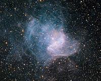 Beautiful Image Of A Cosmic SculptureParis, France (SPX) Feb 25, 2010 ESO has released a dramatic new image of NGC 346, the brightest star-forming region in our neighbouring galaxy, the Small Magellanic Cloud, 210 000 light-years away towards the constellation of Tucana (the Toucan). The light, wind and heat given off by massive stars have dispersed the glowing gas within and around this star cluster, forming a surrounding wispy nebular structure that looks ... read more |