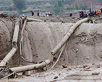 Xiangfen, China (AFP) Sept 11, 2008 Several hundred people believed missing after an industrial landslide engulfed a Chinese town are likely dead, with 128 already confirmed killed, state press said Thursday, citing a senior official. Minister of Work Safety Wang Jun said "several hundred" people are thought buried in the mud and sludge that came cascading down onto the village after a mining waste reservoir burst its banks on Monday, the China Daily reported. "There is almost no hope of their survival ... they have been buried for three days," the paper quoted Wang as saying. The landslide in Taoshi township, Shanxi province, buried an entire village of 1,000 people, including a market that was full of shoppers attending a "major fair," the China Daily reported, citing witnesses. The latest official death toll given on Wednesday night was 128, with 35 injured. However that was based on the number of bodies pulled out of the sludge. The number of rescue workers nearly doubled on Wednesday to 2,200, while earthmovers were called in to clear the sludge that was several hundred metres across and more than two kilometres long. Before being ordered out of the town by police on Wednesday, an AFP reporter saw the remains of a buried school, a market entirely covered by mud and the wreckage of a few cars that had been hauled out of the muck. The mud appeared to be more than six metres (20 feet) deep in some places. President Hu Jintao and Premier Wen Jiabao have ordered an "all-out" emergency response and rapid investigation into the disaster, which the government has blamed on the company that ran the illegal mine. The administration said the mine had kept a tailing pond full of ore dregs, which burst its banks amid heavy rain and sent sludge into the village, in Xiangfen county. Police have already detained nine of the mining company's employees, including the boss. The Communist Party secretary, the mayor of Taoshi, and two work safety officials have also been sacked "for lax work safety supervision and a failure to strictly deal with hidden safety dangers," state press reported Wednesday. Community Email This Article Comment On This Article Related Links Bringing Order To A World Of Disasters A world of storm and tempest When the Earth Quakes