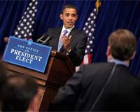 Washington (AFP) Jan 12, 2009 US president-elect Barack Obama has vowed to take swift action on the Middle East peace process and Iran's nuclear ambitions but played for time to shut down the Guantanamo Bay prison camp. In an interview with ABC's "This Week" program broadcast Sunday, Obama defended his reluctance to speak out on Israel's bloody offensive in the Gaza Strip before he succeeds President George W. Bush on January 20. But while he promised rapid efforts on the peace process and diplomatic engagement with Iran, Obama said it would be a "challenge" to close the Guantanamo Bay prison camp in his first 100 days in office. Obama said he was building a diplomatic team so that "on day one, we have the best possible people who are going to be immediately engaged in the Middle East peace process as a whole." The team would "be engaging with all of the actors there" so that "both Israelis and Palestinians can meet their aspirations," Obama said. Until then, he said again that he would leave the Bush administration to speak on foreign policy. Israel indicated for the first time Sunday that an end was in sight to its war on the Palestinian group Hamas, amid some of the heaviest clashes of an offensive that has killed nearly 900 people in the Gaza Strip. Asked about Arab criticism of his relative silence on the bloodshed, Obama said "when you see civilians, whether Palestinian or Israeli, harmed, under hardship, it's heartbreaking." "And obviously what that does is it makes me much more determined to try to break a deadlock that has gone on for decades now." Under the Bush administration, the United States has been accused by the Palestinians of siding uncritically with Israel to the detriment of the peace process overall. Obama stood by his words of July, during a visit to Israel, when he had said: "If somebody was sending rockets into my house where my two daughters sleep at night, I'm going to do everything in my power to stop that. I would expect Israelis to do the same thing." Obama meanwhile took note of a warning from former US defense secretary William Perry Thursday that he would likely face a "serious crisis" over Iran's nuclear ambitions in his first year in office. "I think that Iran is going to be one of our biggest challenges," the president-elect said, warning a nuclear-armed Iran "could potentially trigger a nuclear arms race in the Middle East." Obama promised "a new emphasis on respect and a new emphasis on being willing to talk, but also a clarity about what our bottom lines are." "And we are in preparations for that. We anticipate that we're going to have to move swiftly in that area." The Islamic republic has defied UN sanctions designed to halt its enrichment of uranium, insisting that its nuclear program is for civilian energy needs and has no military bent. "And we are going to have to take a new approach. And I've outlined my belief that engagement is the place to start," Obama said. "That the international community is going to be taking cues from us in how we want to approach Iran." When asked about his promise to close the controversial prison at Guantanamo Bay, which still holds some 250 "war on terror" suspects, Obama said: "It is more difficult than I think a lot of people realize." He said his legal and national security advisers were working out the best approach. But Obama added emphatically that the prison at the US naval base would be closed. "I don't want to be ambiguous about this," he said. "We are going to close Guantanamo and we are going to make sure that the procedures we set up are ones that abide by our constitution," he said, vowing also that his administration would "not torture" terror suspects. Obama did not rule out prosecutions of Bush administration officials for civil liberties abuses, but said he was more focused on "doing the right thing" moving forward. Share This Article With Planet Earth