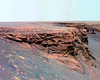 Pasadena CA (SPX) Apr 14, 2008 Opportunity has finished grinding into the surface and acquiring microscopic images of a rock target informally named "Gilbert," at the bottom of the alcove inside "Victoria Crater" known as "Duck Bay." The rover is in the middle of a campaign to study the composition of the exposed interior of the rock using both the Mossbauer and alpha-particle X-ray spectrometers. Some time next week, Opportunity is expected to begin driving toward the spectacular promontory in the crater rim known as "Cape Verde" for some close-up imaging. Because of Opportunity's tilt inside the crater relative to the path of the Mars Odyssey orbiter as it travels across the Martian sky, Opportunity has had difficulty relaying data via UHF links to Odyssey. In the afternoon of Martian day, or sol, 1473 (March 16, 2008), sending data at a rate of 128 kilobits per second, Opportunity returned only 9.5 megabytes of data. On sol 1475 (March 18, 2008), transmitting data at a rate of 32 kilobits per second, Opportunity returned only 3.4 megabytes of data. The rover made up for lost time, however, transmitting 129 megabytes and 91 megabytes on sols 1474 (March 17, 2008) and 1476 (March 19, 2008), respectively. Power levels continue to drop as expected for the winter season. Sol-by-sol summary In addition to receiving instructions directly from Earth via the rover's high-gain antenna, relaying data to Earth via the UHF antenna on the Mars Odyssey orbiter, and measuring atmospheric dust with the panoramic camera, Opportunity completed the following activities: Sol 1471 (March 14, 2008): Opportunity acquired data about iron-bearing minerals in a rock target known as "Dorsal New" using the Mossbauer spectrometer. The rover acquired part 10 of the super-resolution panorama of the rim of Victoria Crater, known as the rimshot, using the panoramic camera. Sol 1472: Opportunity retracted the robotic arm, acquired full-color images of "Dorsal" using all 13 filters of the panoramic camera, and moved the robotic arm back into position to place the rock abrasion tool above Dorsal New. The rover then completed a grind-scan maneuver with the rock abrasion tool to locate the surface of the rock target. Opportunity also surveyed the sky and the horizon with the panoramic camera, acquired parts 11 and 12 of the super-resolution rimshot of Victoria Crater with the panoramic camera, scanned the sky for clouds with the navigation camera, and took spot images of the sky for calibration purposes with the panoramic camera. Sol 1473: Opportunity acquired parts 13 and 14 of the super-resolution rimshot of Victoria Crater with the panoramic camera, measured argon gas in the Martian atmosphere with the alpha-particle X-ray spectrometer, and took images of the sky (known as "sky flats") for calibration purposes with the navigation camera. Sol 1474: Opportunity monitored dust on the panoramic-camera mast assembly and surved the horizon with the panoramic camera. Sol 1475: Opportunity ground into the surface of Dorsal New with the rock abrasion tool, swung the robotic arm out of the way, and took panoramic-camera images of the freshly ground surface. Sol 1476: Opportunity acquired movie frames in search of clouds with the navigation camera and took spot images of the sky with the panoramic camera. Sol 1477 (March 20, 2008): Opportunity acquired a 2-by-2-by-5 stack of microscopic images, along with eight extra microscopic images, of the freshly abraded rock surface, and placed the Mossbauer spectrometer on the target for further study. Odometry As of sol 1476 (March 19, 2008), Opportunity's total odometry was 11,671.23 meters (7.25 miles). Community Email This Article Comment On This Article Related Links Mars News and Information at MarsDaily.com Lunar Dreams and more