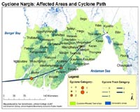Baltimore MD (SPX) May 19, 2008 As many as 3.2 million Burmese are estimated to be affected by the devastation caused by Cyclone Nargis, according to geographic risk models developed by researchers from the Johns Hopkins Bloomberg School of Public Health and Lehman College, CUNY. Using Geographic Information Systems (GIS), the researchers calculated the likely distribution of the population of Burma (also known as Myanmar) and developed maps of the regions at greatest risk from the storm's effects. "We estimate that 20 percent of the population in the four affected administrative divisions could be affected by Cyclone Nargis," said Shannon Doocy, PhD, an assistant professor with the Center for Refugee and Disaster Response, who developed the vulnerability estimates with colleagues from the Bloomberg School's Center for Public Health and Human Rights, and from Lehman College. "These are rough estimates, but our calculations could be of great help to relief agencies that are trying to provide aid on the ground." According to the calculations, the Ayeyarwady region was hardest hit, with 1.8 million people affected; another 1.1 million were potentially affected in the Yangon administrative division. At least 100,000 people in both the Bago East and Mon divisions were also affected. The United Nations estimates that as many as 220,000 are missing following the cyclone and that 63,000 to 101,000 people were killed. Major health threats for cyclone survivors include waterborne diseases such as typhoid, which has already been reported in some areas and potential outbreaks of dysentery from cholera and E. coli. Measles outbreaks, which are common in settings of mass displacement, are a concern for children and a possible threat. Mosquito-borne diseases, particularly malaria and dengue fever, are prevalent in Burma and are also significant health risks. "Right now, the risk of disease outbreaks in Burma is especially high-much more so than we've typically seen with tropical cyclones in past decades-because the humanitarian assistance so far has been delayed and woefully inadequate in scale," said Chris Beyrer, MD, MPH, director of the Center for Public Health and Human Rights. "The military regime continues to rebuff offers of assistance from the international community more than a week after the storm, and they continue to restrict visas, limit international observers, and insist upon relying solely on its own response, which by all accounts, is markedly inadequate." Beyrer added that international guidelines on human rights and natural disasters cite the right of all affected populations to evacuation and other lifesaving measures, protection against negative impacts of natural hazards, and access to adequate food, water, shelter, sanitation and health services. In addition to estimating the population vulnerability, the Bloomberg School is working with its partners based in the region to provide assistance to the Burmese people. Eight, five-person relief teams are working in Rangoon, Burma's largest city, and in the country's delta region. These teams, which are trained by Hopkins personnel in rapid assessment and response, are assisting with water purification and the distribution of food, clothing, medicines and other essentials. The researchers were supported by a grant from the Human and Social Dynamics Program at the National Science Foundation. Community Email This Article Comment On This Article Related Links Maps and additional information Bringing Order To A World Of Disasters A world of storm and tempest When the Earth Quakes
