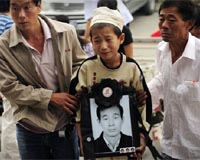 Urumqi, China (AFP) July 15, 2009 Her face contorted into a tear-smeared mask of pain, Chen Yaping pours out the shock and grief of losing her husband in last week's deadly unrest in China. "My husband! I want to take you back home. Why can't I take you back home?" wailed Chen, 29, her knees buckling with grief as two female relatives held her up by the arms at a funeral home outside the city. Ten days after violence in Urumqi that saw savage attacks by Muslim Uighurs on China's dominant Han ethnic group, many victims in the Xinjiang regional capital are fixing shattered windows and reviving broken businesses. But relatives of the dead are confronting the far more difficult task of rebuilding shattered families and dreams, a job made all the more difficult by the senselessness of the murders. Chen's husband, Ding Haohua, was beaten to death on July 5 as Uighurs rampaged through Urumqi city, according to friends, who said he was just walking along a street when he was attacked. The Uighurs were venting decades of hatred over what they say is Chinese repression and domination by the Han. The brutal violence left at least 184 dead, mostly Han. Large paper wreaths this week lined walls at the Yanerwo funeral home, draped with sashes that read "Have a peaceful journey, brother, father and comrade," for Ding, 35, who also left behind a one-year-old son. Firecrackers snapped in the distance from other funeral ceremonies while the facility's crematorium belched brown smoke into the sky. "We were from the same village and I knew him since we were kids," Chen Baochun, 40, said of Ding, holding out his hand at the height of a young child. "Why did he have to die? He was a good man who worked hard to raise the living standards of his family." Like several Han victims memorialised at the busy funeral home, Ding had come to Urumqi several years ago as an economic migrant from poor Anhui province in eastern China, eventually opening a small convenience store. He was one of many drawn by the promise of economic growth in Xinjiang, but who became innocent victims of local Uighur anger sparked in part by the Han influx. Another Anhui migrant, Fu Guanli, was also killed on the street by Uighur rioters, relatives said. Wearing a pointed white mourning hood and carrying a framed picture of his father, 12-year-old Fu Qiqi led a grim funeral procession, tears streaming down the boy's face as other relatives wailed around him. Illustrating the ripple effect of such killings, Fu, 47, also left behind a wife and two younger daughters, plus a large extended family back home who depended on his earnings from construction work. "We will take (Fu's remains) back home now. His family won't come back here," his brother, Fu Guanxia, 49, said quietly as he smoked a cigarette, his eyes reddened from crying. "We will have to rely on the government's help now." The government has promised families of "innocent" victims 200,000 yuan (29,000 dollars) in compensation plus 10,000 yuan towards each funeral. But many survivors will bear deep scars, both physical and emotional. Emerging from a makeshift centre where victims register for pay outs, Yi Ling removed a cap to reveal a deep, swollen gash on her shaven head. Yi, a Han, was struck with a blunt object the night of July 5. She does not know who did it. "My feelings about this are extremely complicated and I can't make sense of them," she said, fighting back sobs as her 10-year-old son looked on. "These were not the actions of human beings." Yi now has nightmares and fears for her family's safety. "I'm afraid there will be more violence. The ethnic contradictions here are just too big for the government to solve," she said. Share This Article With Planet Earth
