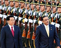 Beijing (AFP) Oct 15, 2008 Pakistani President Asif Ali Zardari met his Chinese counterpart Hu Jintao on Wednesday as he looked to Islamabad's loyal ally for crucial financial and nuclear energy investments. Zardari, on his first state trip since taking office in September, was greeted by Hu at Beijing's Great Hall of the People, the seat of power in China. Hu extended an effusive welcome, stressing close bilateral ties going back to the premiership of Zardari's late wife Benazir Bhutto, who was assassinated last December, and her father, late president Zulfikar Ali Bhutto. "Your entire family are old friends of the Chinese people," Hu told Zardari. "This is something we will never forget." The two leaders signed 11 agreements, one on technical and economic co-operation. The Financial Times newspaper has reported, without citing sources, that Zardari would seek a soft loan of between 500 million and 1.5 billion dollars from China to help cash-strapped Pakistan out of a financial crisis. Zardari inherited nearly empty government coffers and huge security problems from Islamic extremists. The global financial crisis has pushed Pakistan closer to the financial brink. Reports, denied by Islamabad, have said the country faced bankruptcy perhaps as soon as February. Zardari, who had praised China as "the future of the world" before departing Pakistan for Beijing, told Hu the selection of China as his first overseas visit reflected the importance of bilateral ties. "The only way I could do justice to the memory of my late wife and my late father-in-law was to make sure that I made my first president's trip to China," he said before the two leaders went in for meetings. Pakistan's ambassador to China, Masood Khan, said earlier in an interview with Pakistan television station Geo that an agreement on a civilian nuclear pact with China could be reached during the trip. China's foreign ministry has confirmed the subject would be discussed but gave no specifics. If an agreement is signed, it would come after the United States last week signed a deal with Pakistan's rival, India, to open up sales of civilian nuclear technology to New Delhi for the first time in three decades. Liu Xuecheng, a researcher with the China Institute of International Studies, told AFP any such agreement should not raise alarm bells for other countries. "The nuclear cooperation between China and Pakistan is confined to civilian use. It has lasted for some time and... will continue," Liu said. "We should view this with a normal mentality. We should not view the relationship among these countries with a Cold-War attitude." The visit also comes as Islamabad's anti-terror alliance with Washington has become strained amid American impatience with Pakistani efforts to root out Taliban and Al-Qaeda fighters in its lawless border region. Zardari said in his interview with Xinhua that he would seek to step up co-operation with China in the fight against terrorism. China has long been one of Pakistan's closest political and economic partners, with Beijing looking to Islamabad as a counterbalance to India. Zardari is also set to meet on Thursday with Premier Wen Jiabao. Community Email This Article Comment On This Article Related Links News From Across The Stans