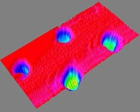 Tucson AZ (SPX) Aug 15, 2008 NASA's Phoenix Mars Lander has taken the first-ever image of a single particle of Mars' ubiquitous dust, using its atomic force microscope. The particle -- shown at higher magnification than anything ever seen from another world -- is a rounded particle about one micrometer, or one millionth of a meter, across. It is a speck of the dust that cloaks Mars. Such dust particles color the Martian sky pink, feed storms that regularly envelop the planet and produce Mars' distinctive red soil. "This is the first picture of a clay-sized particle on Mars, and the size agrees with predictions from the colors seen in sunsets on the Red Planet," said Phoenix co-investigator Urs Staufer of the University of Neuchatel, Switzerland, who leads a Swiss consortium that made the microscope. "Taking this image required the highest resolution microscope operated off Earth and a specially designed substrate to hold the Martian dust," said Tom Pike, Phoenix science team member from Imperial College London. "We always knew it was going to be technically very challenging to image particles this small." It took a very long time, roughly a dozen years, to develop the device that is operating in a polar region on a planet now about 350 million kilometers or 220 million miles away. The atomic force microscope maps the shape of particles in three dimensions by scanning them with a sharp tip at the end of a spring. During the scan, invisibly fine particles are held by a series of pits etched into a substrate microfabricated from a silicon wafer. Pike's group at Imperial College produced these silicon microdiscs. The atomic force microscope can detail the shapes of particles as small as about 100 nanometers, about one one-thousandth the width of a human hair. That is about 100 times greater magnification than seen with Phoenix's optical microscope, which made its first images of Martian soil about two months ago. Until now, Phoenix's optical microscope held the record for producing the most highly magnified images to come from another planet. "I'm delighted that this microscope is producing images that will help us understand Mars at the highest detail ever," Staufer said. "This is proof of the microscope's potential. We are now ready to start doing scientific experiments that will add a new dimension to measurements being made by other Phoenix lander instruments." "After this first success, we're now working on building up a portrait gallery of the dust on Mars," Pike added. Mars' ultra-fine dust is the medium that actively links gases in the Martian atmosphere to processes in Martian soil, so it is critically important to understanding Mars' environment, the researchers said. The particle seen in the atomic force microscope image was part of a sample scooped by the robotic arm from the "Snow White" trench and delivered to Phoenix's microscope station in early July. The microscope station includes the optical microscope, the atomic force microscope and the sample delivery wheel. It is part of a suite of tools called Phoenix's Microscopy, Electrochemistry and Conductivity Analyzer. Community Email This Article Comment On This Article Related Links Phoenix at LPL Phoenix at NASA Mars News and Information at MarsDaily.com Lunar Dreams and more