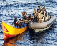 Mogadishu (AFP) Dec 5, 2009 Somali pirates who captured an oil-laden Greek tanker a week ago on Saturday warned against any attempt by foreign naval forces to free the vessel by force. Hijacked on November 29 with a crew of 16 Filipinos, nine Greeks, two Ukrainians and a Romanian, the Greek-flagged Maran Centaurus -- a very large crude carrier -- is now anchored off the pirate lair of Haradhere, they said. "We are getting some information that foreign forces are planning to free the ship by force but we warn against any such endeavour because it will have very unpleasant consequences," a pirate who gave his name as Abdi Hasan said. "There are more than 50 men on board the tanker now and we are prepared resist any rescue attempt," he told AFP by phone from Haradhere. The 1995-built supertanker, the second largest vessel ever seized by Somali pirates, is carrying crude oil and could cause environmental damage of historic proportions if it ran aground or armed fighting erupted on board. On December 2, the 332-metre (1,000-foot) -long ship was brought to the pirate base of Hobyo but has subsequently been moved further south to Harardhere, local fishermen said. "The big ship is now close to the coast of Harardhere and there are many heavily-armed pirates shuttling between the ship and the shore all the time," Osmail Abdullahi Togane, one of the fishermen, said. "They are guarding this ship more than others, I think they fear attacks by the warship that can be seen patrolling further out in the ocean," he said. In a statement issued on Wednesday the operators and managers of the hijacked tanker, Maran Tankers Management Inc, said they "remain totally committed to ensuring the safety of those on board and their speedy release." "Contacts have started between those holding the ship and the people representing the owners in an effort to expedite the release of the ship," Abdi Yare, another Harardhere-based pirate, told AFP. "I don't have details of the discussions right now but the pirates' only demand is a ransom. It's all about the ransom," he said. The ship, the first known case of Greek-flagged ship being hijacked, was headed from Saudi Arabia to the United States with an estimated 20 million dollars worth of crude oil. The 300,000-tonne (deadweight) supertanker, hijacked by nine pirates, is easy prey for pirates equipped with fast skiffs and grapnels as it moves slowly cannot outmanoeuvre the nimble sea-robbers and has a low freeboard. Supertankers such as these, with less than 30 crew on a ship a third of a kilometre long, cruise on auto-pilot most of the time and would rarely have anybody keeping watch on deck at night. Pirates from the town of Harardhere last year nabbed another VLCC, the saudi-owned Sirius Star, in what was then their biggest ever catch. According to sources close to the negotiations for its release -- which occurred in January 2009 -- and to pirates, a total of nearly eight million dollars was paid in ransom money. Since foreign navies deployed to protect the crucial maritime choking point of the Gulf of Aden, Somalia sea bandits have ventured deeper into the Indian Ocean, seizing ships as far east as the Seychelles and beyond. According to Ecoterra International, an environmentalist organisation moniroting illegal maritime activities in the region, pirates currently hold at least 11 ships and close to 300 seamen. Share This Article With Planet Earth