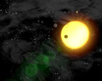 Pasadena CA (SPX) Jul 29, 2010 Hundreds of extrasolar planets have been found over the past decade and a half, most of them solitary worlds orbiting their parent star in seeming isolation. With further observation, however, one in three of these systems have been found to have two or more planets. Planets, it appears, come in bunches. Most of these systems contain planets that orbit too far from one another to feel each other's gravity. In just a handful of cases, planets have been found near enough to one another to interact gravitationally. Now, however, John A. Johnson, an assistant professor of astronomy at the California Institute of Technology (Caltech), and his colleagues have found two systems with pairs of gas giant planets locked in an orbital embrace. In one system-a planetary pair orbiting the massive, dying star HD 200964, located roughly 223 light-years from Earth-the intimate dance is closer and tighter than any previously seen. "This new planet pair came in an unexpected package," says Johnson. Adds Eric Ford of the University of Florida in Gainsville, "A planetary system with such closely spaced giant planets would be destroyed quickly if the planets weren't doing such a well synchronized dance. This makes it a real puzzle how the planets could have found their rhythm." A paper by Johnson, Ford, and their collaborators describing the planets and their intriguing orbital dynamics has been accepted for publication in the Astronomical Journal (see http://arxiv.org/abs/1007.4552 for a preprint). All of the four newly discovered exoplanets are gas giants more massive than Jupiter, and like most exoplanets were discovered by measuring the wobble, or Doppler shift, in the light emitted by their parent stars as the planets orbit around them. Surprisingly, however, the members of each pair are located remarkably close to one another. For example, the distance between the planets orbiting HD 200964 occasionally is just .35 astronomical units (AU)-roughly 33 million miles-comparable to the distance between Earth and Mars. The planets orbiting the second star, 24 Sextanis (located 244 light-years from Earth) are .75 AU, or about 70 million miles. By comparison, Jupiter and Saturn are never less than 330 million miles apart. Because of their large masses and close proximity, the exoplanet pairs exert a large gravitational force on each other. The gravitational tug between HD 200964's two planets, for example, is 3,000,000 times greater than the gravitational force between Earth and Mars, 700 times larger than that between the Earth and the moon, and 4 times larger than the pull of our sun on the Earth. Unlike the gas giants in our own solar system, the new planets are located comparatively close to their stars. The planets orbiting 24 Sextanis have orbital periods of 455 days (1.25 years) and 910 days (2.5 years), and the companions to HD 200964 periods of 630 days (1.75 years) and 830 days (2.3 years). Jupiter, by contrast, takes just under 12 Earth years to make one pass around the sun. Planets often move around after they form, in a process known as migration. Migration is thought to be commonplace-it even occurred to some extent within our own solar system-but it isn't orderly. Planets located farther out in the protoplanetary disk can migrate faster than those closer in, "so planets will cross paths and jostle each other around," Johnson says. "The only way they can 'get along' and become stable is if they enter an orbital resonance." When planets are locked in an orbital resonance, their orbital periods are related by the ratio of two small integers. In a 2:1 resonance, for example, an outer planet will orbit its parent star once for every two orbits of the inner planet; in a 3:2 resonance, the outer planet will orbit two times for every three passes by the inner planet, and so forth. Such resonances are created by the gravitational influence of planets on one another. "There are many locations in a protoplanetary disk where planets can form," says Johnson. "It's very unlikely, however, that two planets would just happen to form at locations where they have periods in one of these ratios." A 2:1 resonance-which is the case for the planets orbiting 24 Sextanis-is the most stable and the most common pattern. "Planets tend to get stuck in the 2:1. It's like a really big pothole," Johnson says. "But if a planet is moving very fast"-racing in from the outer part of the protoplanetary disk, where it formed, toward its parent star-"it can pass over a 2:1. As it moves in closer, the next step is a 5:3, then a 3:2, and then a 4:3." Johnson and his colleagues have found that the pair of planets orbiting HD 200964 is locked in just such a 4:3 resonance. "The closest analogy in our solar system is Titan and Hyperion, two moons of Saturn which also follow orbits synchronized in a 4:3 pattern," says Ford. "But the planets orbiting HD 200964 interact much more strongly, since each is around 20,000 times more massive than Titan and Hyperion combined." "This is the tightest system that's ever been discovered," Johnson adds, "and we're at a loss to explain why this happened. This is the latest in a long line of strange discoveries about extrasolar planets, and it shows that exoplanets continuously have this ability to surprise us. Each time we think we can explain them, something else comes along." Johnson and his colleagues found the two systems using data from the Keck Subgiants Planet Survey-a search for planets around stars from 40 to 100 percent larger than our own sun. Subgiants represent a class of stars that have evolved off the "main sequence," and have run out of hydrogen for nuclear fusion, causing their core to collapse and their outer envelope to swell. Subgiants eventually become red giants-voluminous stars with big, puffy atmospheres that pulsate, making it difficult to detect the subtle spectral shifts caused by orbiting planets. "Subgiants are rotating very slowly and they're co