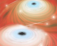 Newly Merged Black Hole Eagerly Shreds StarsCambridge MA (SPX) Apr 11, 2011 A galaxy's core is a busy place, crowded with stars swarming around an enormous black hole. When galaxies collide, it gets even messier as the two black holes spiral toward each other, merging to make an even bigger gravitational monster. Once it is created, the monster goes on a rampage. The merger kicks the black hole into surrounding stars. There it finds a hearty meal, shredding and sw ... read more |