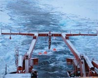 Bremerhaven, Germany (SPX) Oct 24, 2008 The German research vessel Polarstern has returned to Bremerhaven from the Arctic Sea. It has cruised as the first research vessel ever both the Northeast and the Northwest Passages and thereby circled the North Pole. The third part of the research vessel's 23rd Arctic expedition, operated by the Alfred Wegener Institute in the Helmholtz Association, started its journey on August 12th in Reykjavik and ended it on October 17th in Bremerhaven. The ship travelled a distance of 10.800 nautical miles, equivalent to 20.000 kilometres. On board were 47 researchers from 12 nations, for example from Belgium, Germany, France, Japan, Canada, Korea, the Netherlands, Russia and the USA. Because of the small ice cover, the expedition members were able to research hitherto uncharted waters. The small sea ice cover presents a cause for concern regarding climate change in the Arctic Ocean. The aim of this expedition was to gather data on the development of the geology of the Arctic area. The researchers around cruise leader Dr. Wilfried Jokat, geophysicist at the Alfred Wegener Institute, have discovered large sliding masses close beneath the seafloor of the East-Siberian continental shelf by means of sediment-acoustic parasound measurements. "Sliding masses are witnesses of great sediment relocations which appear, for instance, when large amounts of sediments are deposited", explains Jokat. The continental slope becomes instable and sediments slide down. Such a large amount of sediments causing a shift can only have one reason: the sediments were frozen in the ice masses of the East-Siberian mainland, thawed during an interglacial and unloaded their sediments with the melt water into the ocean. "This is a spectacular finding. Large-scale glaciations in eastern Siberia within the younger geological past of 60.000 years and older are so far unknown", explains Prof. Dr. Rudiger Stein, geologist at the Alfred Wegener Institute. Additional acoustic (seismic) data show that the East-Siberian Shelf was covered with ice over the last three million years only during a few glacial periods. Further investigations are necessary to confirm this finding and particularly to time the reported events chronologically. The scientists have brought material in the form of sediment cores to Bremerhaven to achieve this. 16 soil samples could be taken on a transect of 700 kilometres from the Canada Basin via the Mendeleev Ridge into the Makarov Basin. The analysis will allow for the first time to compare the glacial history of the Northern USA and Canada with Siberia and to elaborate differences and parallels in detail. Furthermore, the data from the sediment cores can deliver information on the temporal and spatial changes of ocean currents and the extent of sea ice in the central Arctic Ocean. "We expect from these investigations important new insights into the control procedures of long and short term climate changes in the Arctic", says a delighted Stein. Another focal point of this cruise was on the geological development of the Arctic Ocean during the last 90 million years. Seismic, an acoustic measurement method, allows peeking into the deep layers under the ocean floor down to 4.000 metres depth. "The collected data show that the ocean basin between the two Arctic ridge systems, the Lomonossov and the Mendeleev Ridge, are considerably older than estimated so far. Thus, the basins in the old part of the Arctic Ocean, the Makarov and the Canada Basin, have developed at about the same", reports Jokat. "The following detachment of the Lomonossov Ridge from the East-Siberian Shelf took place 60 million years ago - not without massive changes to the environment. The data present evidence of strong relocation processes in the deep-sea sediments", continues the geophysicist. "Many model representations about the development of the Arctic Ocean must be rethought on the basis of the new data", concludes Jokat. Oceanographers regularly collect data on water temperature, density and salinity from the ship. Additionally, they brought out buoys on ice floes which autonomously conduct these measurements over one or two years. The oceanographers can thereby better understand how the water masses circulate in the Arctic Ocean. Integrated into long-term measurements, they can describe changing water temperatures and sea ice cover regarding climate change. Biologists on board investigated the occurrence and distribution of the copepod Oithona similis in the Arctic Ocean. This small crab is an important part of the food web. It feeds, among other things, on small algae and animals and serves on its part as food for fish larvae. Another biological programme is aimed at collecting data on the distribution of birds, seals, whales and polar bears along the route. An almost continuous measurement of the seafloor and a programme for water probes rounded off the interdisciplinary scientific programme. The measurements contribute to research within the framework of the International Polar Year, the European project DAMOCLES and the North Atlantic project of the German Federal Ministry of Education and Research. After the usual maintenance and repair work, Polarstern will leave on October 31st with the destination Cape town. There begins the Antarctic season 2008/09. Community Email This Article Comment On This Article Related Links Helmholtz Association of German Research Centres Beyond the Ice Age