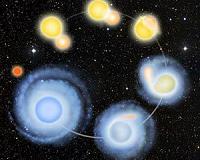 Stellar Mosh Pit Of Crashing Stars Resolves A MysteryMadison WI (SPX) Dec 28, 2009 For almost 50 years, astronomers have puzzled over the youthful appearance of stars known as blue stragglers. Blue stragglers are the timeworn Hollywood starlets of the cosmos: They shine brightly, they are older than they appear, and they have, disconcertingly, gained mass at a late stage of life. "These blue, luminous stars should have used up their hydrogen fuel and flamed out long ago, ... read more |