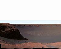 Pasadena CA (SPX) Jul 14, 2008 Opportunity has completed work on the stand-off portion of the full-color panorama of the layered cliff known as "Cape Verde." It may take a couple of weeks for the entire panorama to arrive on Earth, depending on the volume of data the rover is able to transmit during communications links. Next, Opportunity will move closer to Cape Verde to take a high-resolution image of a smaller area in front of the rover. During the past week, engineers characterized the performance of the rover's rock abrasion tool along the z-axis by comparing voltage and the speed of the actuator at different temperatures. In the event that the z-axis encoder lines break, as have the encoder lines for the rotate and revolve axes, this characterization will be essential in developing a functional strategy for operating the rock abrasion tool with full, open-loop control. The z-axis encoder is responsible for moving the cutting head outward into the rock. Next week's plans call for Opportunity to bump forward to a point only a few meters away from the cliff face to take high-resolution images. If possible, Opportunity will also conduct scientific studies of an outcrop target called "Nevada" (so named because of a rock next to it which has a shape reminiscent of the outline of the state of Nevada) using instruments on the robotic arm. Opportunity is healthy and all subsystems are performing as expected. Energy is around 376 watt-hours (100 watt-hours is the amount of energy required to light a 100-watt bulb for one hour). As of Sol 1578 (July 2, 2008) , Tau (a measure of darkness due to atmospheric dust) was at 0.413 and the dust factor (a measure of the proportion of sunlight penetrating dust on the solar arrays) was at 0.771. Sol-by-sol summary: In addition to receiving morning, direct-from-Earth instructions via the rover's high-gain antenna, sending evening UHF data to NASA's Odyssey orbiter for transmission to Earth, measuring atmospheric dust with the panoramic camera, surveying the sky for clouds with the navigation camera, and monitoring dust accumulation on the rover mast, Opportunity completed the following activities: Sol 1574 (June 28, 2008): Opportunity began acquiring "dusty," super-resolution images of targeted portions of the outcrops exposed in the Cape Verde cliff dubbed "Alpha," "Bravo," "Charlie," "Delta," and "Echo." To do this, the rover compensated for dust accumulation on the right side of each lens by taking images using only a subset of available pixels. On this particular sol, Opportunity acquired dusty, super-resolution images of "Alpha" and "Echo." Sol 1575: Opportunity acquired dusty, super-resolution images of Bravo, Charlie, Delta, and Echo using the panoramic camera. The rover also acquired six, time-lapse movie frames in search of clouds using the navigation camera. Sol 1576: Opportunity acquired more dusty, super-resolution images of Echo with the panoramic camera and took images of Cape Verde in shadow at 2:30 p.m. local Mars time and at 3 p.m. local Mars time. Sol 1577: Opportunity acquired dusty, super-resolution images of a target dubbed "Foxtrot" with the panoramic camera and characterized the performance of the rock-abrasion tool along the z-axis at warm temperatures. The rover reacquired five dusty, super-resolution images of Cape Verde and Bravo. Sol 1578: Opportunity characterized the ability of the z-axis encoder to move the cutting head of the rock abrasion tool outward at cold temperatures and reacquired dusty, super-resolution images of Alpha. Sol 1579: In the morning, Opportunity surveyed the horizon with the panoramic camera. The rover measured argon gas in the Martian atmosphere using the alpha-particle X-ray spectrometer. Opportunity also acquired a 27-by-1 panel of images of Cape Verde at dusk with the left-hand lens of the panoramic camera. Sol 1580 (July 4, 2008): Opportunity acquired a 27-by-1 panel of images of Cape Verde at dusk with the right-hand lens of the panoramic camera. Odometry: As of sol 1580 (July 4, 2008), Opportunity's total odometry was 11,723.94 meters (7.28 miles). Community Email This Article Comment On This Article Related Links Mars News and Information at MarsDaily.com Lunar Dreams and more