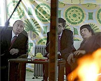 Moscow (AFP) Nov 1, 2008 Libya and Russia signed a civil nuclear cooperation deal Saturday, Tripoli's foreign minister said, as Moamer Kadhafi visited Moscow for talks he said could help restore "geopolitical equilibrium". The Libyan leader's first visit to Moscow since 1985, the Cold War era, and which included meetings with President Dmitry Medvedev and Prime Minister Vladimir Putin, was also expected to focus on oil and gas and arms purchases. While Russian officials did not confirm the nuclear accord, Libyan Foreign Minister Abdelrahman Chalgham described it as touching on a range of issues. "A cooperation agreement was signed in the area of the peaceful use of civilian nuclear, particularly in the design and construction of reactors and the supply of nuclear fuel," said Abdelrahman Chalgham, who accompanied Kadhafi. The deal also extended to nuclear use in medicine and nuclear waste treatment, he said. The Kremlin made no comment, and Russian government spokesman Dmitry Peskov said no such agreement had been signed during the meeting between Kadhafi and Putin. According to sources in the Libyan delegation, the deal was signed by the head of Russia's atomic energy agency, Rosatom, and Libya's head of nuclear energy management. Chalgham said the two countries also signed agreements related to calls for the creation of an OPEC-style body for gas-producing countries, among others. Kadhafi had earlier spoken of cooperating on energy. "Cooperation in the gas and oil sphere is extremely important now," the leader of energy-rich Libya told Medvedev, speaking through a Russian translator. "We will discuss economic issues and coordination in the foreign-policy sphere, matters which are very important at the moment," Medvedev said. At his meeting with Putin, Kadhafi said "the development of our bilateral relations is a positive factor for the international situation ... It contributes to the reestablishment of geopolitical equilibrium." Putin said the two delegations would discuss "big common projects", adding he was "sure that this visit will stimulate the development of our relations in all areas". Vedomosti newspaper reported Saturday that Kadhafi may sign a pact on nuclear energy cooperation. The newspaper cited a source involved in preparations for his visit who did not give details. Russia has reportedly been in talks to build a nuclear power plant in Libya, for years a diplomatic pariah that in recent years has rejoined the international community. Other expected topics included a multi-billion-dollar deal to upgrade Libya's Soviet-era arsenal and lucrative contracts for Russian firms. Libya might also offer to host a Russian naval base at the Mediterranean port of Benghazi, the Russian newspaper Kommersant reported Friday. "The Russian military presence will be a guarantee of non-aggression against Libya from the United States," it said. Kommersant added that Moscow wanted Tripoli to join it in a "gas OPEC" with Qatar. Russia, Iran and Qatar said last month they were forming a joint forum for gas projects but stopped short of advocating an OPEC-style cartel. However, on Saturday Russian papers seemed more interested in the Libyan leader's travel arrangements, with the Izvestia daily running the headline: "Kadhafi set up his tent in the Kremlin." Kadhafi brings a traditional Bedouin tent along with him on state visits, which he uses to host guests. An AFP journalist saw a small fire burning in front of the khaki-coloured tent Saturday in the Kremlin's Tainitsky Garden. Speaking on condition of anonymity, a Kremlin source said ahead of the visit that the two would discuss "the peaceful atom" as well as "military-technical cooperation," a term that typically describes arms purchases. Libya could buy more than two billion dollars (1.5 billion euros) of Russian arms including surface-to-air missiles, tanks and fighter planes, Interfax news agency reported Friday, citing a Russian defence industry source. Relations have warmed this year between Russia and Libya, which began to shed its pariah status in 2003 when it renounced weapons of mass destruction and took responsibility for a 1988 airliner bombing over Lockerbie, Scotland that killed 270 people. In April, during a visit to Tripoli by then-president Putin, Moscow agreed to cancel billions of dollars of Libyan Soviet-era debt in exchange for big contracts for Russian companies. According to Libyan sources in Moscow, Kadhafi is expected to visit Ukraine and Belarus after his visit to Russia. Community Email This Article Comment On This Article Related Links Nuclear Power News - Nuclear Science, Nuclear Technology Powering The World in the 21st Century at Energy-Daily.com