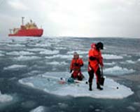 St Petersburg (RIA Novosti) Aug 21, 2007 Russia's new drifting research station in the Arctic will begin working in late September, the press spokesman of the Artic and Antarctic Research Institute said Monday. The North Pole 35 station being set up with the help of the Akademik Fedorov research vessel and the nuclear icebreaker Rossiya, which brought mini-submarines to the pole for the first ever dive to the seabed earlier in August, will conduct research in the area for one year and replace the previous station. Sergei Balyasnikov said about 20 Russian and German scientists will conduct geological and ornithological research on an ice floe in the East Siberian Sea located between the Arctic Cape in the north and Siberia's coast in the south. In early August, Russian researchers descended 4,200 meters (14,000 feet) below the Pole in two submersibles to gather scientific evidence to bolster the country's claim to a vast swathe of extra Arctic territory and planted a titanium Russian flag on the seafloor. The mission attracted criticism from rival Arctic nations. Under international law, the five Arctic Circle countries - the U.S., Canada, Denmark, Norway and Russia - each have a 322-kilometer (200-mile) economic zone in the Arctic Ocean at the moment.
