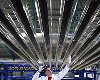 A Timeline for Ambitious Growth In March 2009, the first receiver, a critical component for concentrated solar power plants is expected to be available for sale. The PTR-70 receivers represent the latest in technological advancements for the surging CSP industry. The receiver contains an outer "envelope" glass tube which has an anti-reflective coating. Inside, in an evacuated, sealed environment, is a steel tube covered by an absorptive coating. It is inside this steel tube that a heat transfer fluid (HTF) flows when heated by the sun. This fluid, when heated by the sun, is then used to turn water into steam, which drives a turbine, generating electricity. In April 2009, the first photovoltaic panel manufactured for sale is scheduled to roll off the production line. The 220-watt single-pane PV panel will be similar to products produced at the company's European manufacturing facilities. The Albuquerque site will have an initial annual production capacity of 64MW of PV panels. Additional PV manufacturing lines will be added to the facility to meet market demand. Initially, the 190,000 square-foot facility will have 175,000 square feet allocated to production and 15,000 square feet of office space. The receiver line will occupy nearly double the space of the PV line (115,000 / 60,000 respectively). Future growth at the facility is planned by SCHOTT Solar, which will bring total employment up to 1,500, and SCHOTT's total investment to approximately $500M. Community Email This Article Comment On This Article Related Links All About Solar Energy at SolarDaily.com