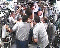 Houston TX (SPX) Nov 05, 2007 The STS-120 crew bid farewell to the Expedition 16 crew before the hatches closed at 3:03 p.m. EST Sunday between Discovery and the station. Attention now turns to Discovery's undocking from the station a little after 5:30 a.m. Monday. STS-120 arrived at the station Oct. 25, delivering the Harmony Node 2 module to the station. The crew installed Harmony Oct. 26 and conducted four spacewalks during its stay at the station. During the third spacewalk, the crew installed the P6 truss and solar array pair in its permanent location outboard of the port truss. The fourth spacewalk was changed during the mission so that the crew could repair a torn solar array on the P6 truss. Following the successful repair work, the crew was able to fully deploy the solar array. Discovery also delivered a new station crew member, Flight Engineer Daniel Tani. He replaced astronaut Clayton Anderson. Anderson arrived at the station in June with STS-117. Before Discovery begins the journey home, Pilot George Zamka will perform a fly-around to allow crew members to collect video and imagery of the station in its new configuration. Discovery is scheduled to land at Kennedy Space Center, Fla., a little after 1:00 p.m. Wednesday. Community Email This Article Comment On This Article Related Links STS-120 Mission Overview Shuttle at NASA Watch NASA TV via Space.TV Space Shuttle News at Space-Travel.Com