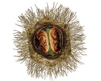 New York, NY (SPX) Jun 10, 2008 A Weizmann Institute study provides important new insights into the process of viral infection. The study, reported in the online journal PLoS Biology, reveals certain mechanisms by which mimivirus - a virus so called because it was originally thought to mimic bacteria in various aspects of their behavior - invades amoeba cells. Living cells become infected by viruses in two steps. First, the virus penetrates the cell. Next, in the second and crucial step, the cell starts producing new viruses, which spread and infect additional cells. At the beginning of this production process, the cell makes the outer wall of the virus, which is a container of sorts composed of proteins and known as the capsid. The cell then makes copies of viral DNA and inserts it into the capsid. The result is a new, functioning virus that is ready to leave the host cell and infect more cells. Understanding how viruses infect cells and how new viruses are produced in the course of the infection allows scientists to interrupt the infection cycle, blocking viral diseases. One of the difficulties, however, is that the invasion strategies of different viruses greatly vary from one another. The mimivirus, known, among other things, for its exceptional size - it is five to ten times larger than any other known virus - poses an interesting challenge in this respect. This virus was discovered only in the late twentieth century, as its extraordinary size made it impossible to identify it by regular means. In addition, it contains much more genetic material than other viruses, a feature that forces the mimivirus to develop particularly efficient methods for introducing its viral DNA into the host cell and for inserting the genetic "parcel" into the protein container during the production of new viruses in the host cell. The Weizmann Institute's Prof. Abraham Minsky and graduate students Nathan Zauberman and Yael Mutsafi of the Organic Chemistry Department, together with Drs. Eugenia Klein and Eyal Shimoni of Chemical Research Support, have now revealed the details of some of the methods used by this virus. In their new study, the scientists have obtained, for the first time, three-dimensional pictures of the openings through which the viral genetic material is injected into an infected cell, and of the process by which this genetic material is inserted into the protein capsid. In all previously studied viruses, viral genetic material was shown to be injected into the cell (during the cell's infection) and to enter the newly formed protein container (during the production of new viruses inside the cell) through the same channel, which was created in the viral container. In contrast, the Institute scientists discovered that the giant mimivirus uses a different channel - located in a different part of its capsid - for each of these two goals. The scientists also discovered that the DNA helix in both these processes does not form a long thread, as in other viruses, but rather is organized into a densely packed block. The researchers believe that these unique traits serve to specifically facilitate both the injection into the host cell and the insertion of the large quantity of genetic material in the mimivirus. In the Weizmann study, electron microscope images of the mimivirus invading an amoeba cell showed that just after invasion, the walls of the protein capsid - a polygon composed of 20 triangles - separate from one another and open up like flower petals to create a large, star-shaped entry nicknamed the "stargate." The viral membrane underneath the stargate fuses with the amoeba cell membrane, creating a broad channel that leads into the amoeba. The pressure released with the sudden opening of the walls - which is 20 times greater than the pressure pushing the cork out of a Champagne bottle - pushes the viral DNA into the channel, whose large dimensions allow the genetic material to pass quickly into the amoeba cell. Additional images show how the viral genetic material is inserted into the newly formed protein container when new viruses are produced in the host cell. In this process, the viral genetic material is delivered to its destination through an opening in the new container's wall opposite the stargate. The insertion must overcome the pressure inside the container and is probably driven by an "engine" located within the wall that harbors the opening. The scientists believe that the study of the mimivirus's life cycle, from cellular infection to the production of new viruses, may yield valuable insights into the mechanisms of action of numerous other viruses, including those that cause human diseases. Prof. Abraham Minsky's research is supported by the Helen and Milton A. Kimmelman Center for Biomolecular Structure and Assembly. Prof. Minsky is the incumbent of the Professor T. Reichstein Professorial Chair. Community Email This Article Comment On This Article Related Links Weizmann Institute of Science Darwin Today At TerraDaily.com