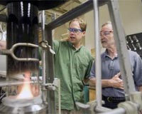 Chestnut Hill MA (SPX) Jul 30, 2008 An aerosol mass spectrometer developed by chemists from Aerodyne Research Inc. and Boston College is giving scientists who study airborne particles the technology they need to examine the life cycles of atmospheric aerosols - such as soot - and their impact on issues ranging from climate change to public health. BC Chemistry Professor Paul Davidovits and Aerodyne Principal Scientist Timothy B. Onasch say their novel spectrometer allows researchers to better understand what happens to these sub-microscopic particles that can absorb and scatter light and influence the lifetime of clouds. "For scientists looking at climate change, the biggest uncertainty has to do with the effect of aerosol particles in the air," says Davidovits. "The issue is made that much more complex because aerosols can have different effects on climate. That means the target is constantly shifting." The historic role of carbon-laden soot in climate change has been identified by researchers, particularly through ice samples taken from glaciers. Now scientists are focusing on tiny airborne particles of black carbon released into the atmosphere today in order to better understand the lifecycle of these aerosols in the atmosphere. To that end, nearly 20 researchers from across the country brought other devices to the Davidovits lab this month to test and fine-tune these new tools developed by scientists from universities, industry and national laboratories at the forefront of this path-breaking science of the sky. Hosted by Davidovits and Onasch, also an associate research professor at BC, the visiting researchers ran streams of laboratory-generated soot through devices able to analyze minute aerosol particles by mass, shape, chemical make-up, even the sound they make when warmed by light - a "pop" inaudible to the human ear. "This is the cutting edge," says Dan Lack, a research scientist with the National Oceanic and Atmospheric Administration's Earth System Research Laboratory in Boulder, Colo. "Much of the technology in this room didn't exist until a few years ago. And there isn't another place in the country where you have all this technology running together in concert. It's a rare opportunity." Among the 18 devices involved in the project are Billerica, MA-based Aerodyne's Aerosol Mass Spectrometer, Boulder-based Droplet Technologies' Single Particle Soot Photometer, and the NOAA-developed Cavity Ring-Down Aerosol Extinction and Photoacoustic Spectrometers, which shoot a laser beam into black carbon, causing the particle to "pop", emitting a frequency that's measured to gauge how much light carbon absorbs. A technological focal point is a unique soot-particle generating apparatus operated by doctoral student Eben Cross, undergraduate Adam Ahern '09 and recent graduate Billy Wrobel '08. The design, construction, and operation of the device were funded by the atmospheric chemistry programs of the Department of Energy and the National Science Foundation. In the race to determine the scope and speed of climate change and the influence of human activities on it, huge scientific efforts have focused on carbon dioxide gasses emitted largely from the burning of fossil fuels. Scientists believe particulates like black carbon may also contribute significantly to global warming. For more than 15 years, Davidovits and his Aerodyne colleagues have pioneered the study of soot particles and gas-particle interactions, strengthening an understanding of the role of cloud and aerosol chemistry in acid rain, ozone depletion and climate change. Aerosols raise temperatures, such as when black particles of soot rise in the sky, absorb sunlight and turn it into heat. Aerosols also can cool by reflecting light away from the earth. Clouds overstuffed with aerosols can inhibit rainfall. While soot emitted from sources like diesel engines and electric power plants is a focus of study, not all aerosols are man-made. The deserts and arid landscapes of the world produce an estimated 10 to 20 billion tons of mineral aerosols a year. The air is full of biological aerosols as well - microbes, cells, and particles containing organic compounds. Aerosols are somewhat fleeting. Unlike carbon dioxide, which can remain in the atmosphere for years, aerosols have an atmospheric life of about 10 to 20 days. In that time, they can absorb other molecules that alter their original state. Measuring the many forms of atmospheric aerosols has led researchers to invent new devices, known as research-grade aerosol particle characterizing instruments, says Davidovits. The challenge now is to fine-tune those instruments in concert with each other in order to set reliable scientific benchmarks for future study. Linked closely to the atmospheric effects of aerosols is a range of public health concerns, says Onasch. "There is a need on many fronts - from the climate to public health - for greater understanding of the role aerosol particles play in our lives and what's happening here is the scientific community rising to meet those needs," says Onasch. Community Email This Article Comment On This Article Related Links Boston College The Air We Breathe at TerraDaily.com