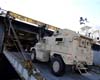 Scott AFB IL (SPX) Dec 03, 2007A commercial cargo ship carrying more than 100 mine-resistant, ambush-protected vehicles for troops in Iraq set sail this week from Naval Weapons Station Charleston, S.C. The vehicles, known as MRAPS, are designed to protect occupants against armor-piercing roadside bombs, knows as "explosively formed penetrators." |