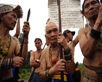 Malaysia's Penan tribe escalates anti-logging campaignLong Belok, Malaysia (AFP) Aug 23, 2009 Hundreds of Penan tribespeople armed with spears and blowpipes have set up new blockades deep in the Borneo jungles, escalating their campaign against logging and palm oil plantations. Three new barricades, guarded by Penan men and women who challenged approaching timber trucks, have been established in recent days. There are now seven in the interior of Malaysia's Sarawak state. "They a ... read more |