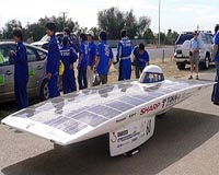 Japanese car wins World Solar Challenge in AustraliaSydney (AFP) Oct 28, 2009 A Japanese sun-powered car won the World Solar Challenge on Wednesday after averaging speeds of more than 100 kilometres (62 miles) per hour in a four-day race through Australia's desert Outback. Organisers said the Tokai Challenger crossed the finish line in Adelaide, South Australia, at 3:39 pm local time, after 29 hours and 49 minutes' racing following Sunday's departure from the northern ... read more |
