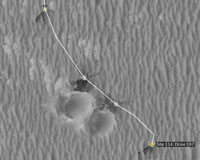 Opportunity For A Twin Crater Drive ByPasadena CA (JPL) Apr 05, 2010 On Sol 2193 (March 26, 2010), Opportunity drove about 68 meters (223 feet) towards a pair of highly eroded craters. On the next sol, the rover performed a drive-by imaging of the twin craters, covering about 55 meters (180 feet). Further driving next to the twin craters was performed on Sol 2197 (March 30, 2010), getting a good look inside, with the rover covering about 30 meters (98 feet) ... read more |