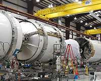 Falcon 9 Ready For Final Assembly At CapeCape Canaveral FL (SPX) Feb 11, 2010 SpaceX reportsthat all the flight hardware for the first launch of the Falcon 9 vehicle is now at the SpaceX launch site, Space Launch Complex 40 (SLC-40), in Cape Canaveral, Florida. Final delivery included the Falcon 9 second stage, which recently completed testing at the SpaceX test facility in McGregor, Texas. SpaceX has now initiated full vehicle integration of the 47 meter (154 ... read more |
