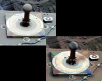 Pasadena CA (JPL) Jun 20, 2007 Spirit got a second spring cleaning on Mars with a dust-cleaning event that increased power from the rover's solar arrays by 120 watt-hours (a 100-watt light bulb that burns for one hour uses 100 watt-hours of electricity). Spirit previously experienced dust-lifting winds in 2005. Energy from the rover's solar arrays is now higher than 600 watt-hours. After completing scientific studies of rock exposures known as "Betty Wagoner" and "Elizabeth Emery," Spirit drove to another rock target called "Nancy Warren" to conduct studies with instruments on the rover's robotic arm, including the microscopic imager, the alpha-particle X-ray spectrometer, the brush on the rock abrasion tool, and the Moessbauer spectrometer. The next destination on Spirit's itinerary is the "on-ramp" of the elevated plateau-like feature known as "Home Plate." Sol-by-sol summary: In addition to daily observations of atmospheric dust levels using the panoramic camera, surveys of the sky and ground using the miniature thermal emission spectrometer, and communication activities including morning direct-from-Earth uplinks via the rover's high-gain antenna and evening downlinks at UHF frequencies via the Mars Odyssey orbiter, Spirit completed the following activities: Sol 1219 (June 8, 2007): Spirit touched a rock exposure adjacent to Betty Wagoner known as "Betty Wagoner's Daughter" with the rock abrasion tool, brushed it, acquired a mosaic of microscopic images, touched the target with the Moessbauer spectrometer, and acquired more microscopic images. The rover placed the Moessbauer spectrometer back on Elizabeth Emery and collected data with the instrument, watched for dust devils, and completed an overnight relay of data to the Odyssey orbiter. Sol 1220: Spirit acquired full-color images of the work area reachable by the robotic arm using all 13 filters of the panoramic camera and watched for morning dust devils. The rover also acquired full-color images using all 13 filters of the panoramic camera of targets known as "Melba Alspaugh," "Helen St. Aubin," and "Ruth Lessing." The rover acquired data using the miniature thermal emission spectrometer from targets known as "Melba Alspaugh2," "Betty Whiting2," "Joan Chiancola," and "Helen St. Aubin2." Spirit watched for dust devils, surveyed a target called "Jean Gilchrist" with the miniature thermal emission spectrometer, and completed an overnight transfer of data to the Odyssey spacecraft. Sol 1221: Spirit acquired spot images of the sky with the panoramic camera and drove toward Nancy Warren. The rover acquired image mosaics with the navigation camera and panoramic camera and completed an overnight tranmission of data to Odyssey. Sol 1222: Spirit conducted a survey of rock clasts with the panoramic camera, scanned the sky for clouds with the navigation camera, and acquired movie frames in search of dust devils with the navigation camera. The rover acquired systematic foreground images using all 13 filters of the panoramic camera and a systematic foreground raster with the miniature thermal emission spectrometer. Spirit again watched for dust devils and acquired movie frames with the navigation camera. The rover measured atmospheric argon using the alpha-particle X-ray spectrometer. Spirit surveyed the horizon with the panoramic camera and monitored dust on the rover's mast. Sol 1223: Spirit completed a reconnaissance study of the rover's tracks using the miniature thermal emission spectrometer. The rover surveyed Nancy Warren with the miniature thermal emission spectrometer, approached Nancy Warren, and acquired post-drive image mosaics with the navigation camera. The rover completed an overnight relay of data to the Odyssey orbiter. Sol 1224: Spirit acquired thumbnail images of the sky using the panoramic camera and conducted a high-sun survey with the panoramic camera. Spirit conducted reconnaissance with the miniature thermal emission spectrometer and completed an overnight relay of data to the Odyssey spacecraft. Sol 1225 (June 14, 2007): Spirit unstowed the robotic arm, acquired a mosaic of microscopic images of Nancy Warren, placed the alpha-particle X-ray spectrometer on the target, and acquired data with the instrument. Spirit relayed data overnight to Odyssey. Odometry: As of sol 1225 (June 14, 2007), Spirit's total odometry was 7,141.67 meters (4.44 miles). CommunityEmail This Article Comment On This Article Related Links Mars Rovers Mars News and Information at MarsDaily.com Lunar Dreams and more