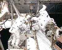 Houston TX (SPX) Jul 24, 2007 Two International Space Station crew members Monday successfully wrapped up a 7-hour, 41-minute spacewalk that saw the removal and jettison of a refrigerator-size ammonia reservoir. The spacewalk from the Quest Airlock ended at 2:06 p.m. EDT. Astronaut Clay Anderson was the lead spacewalker, EV1, wearing the spacesuit with red stripes. Fyodor Yurchikhin, the cosmonaut and station commander, wearing the all-white suit, was EV2. Cosmonaut Oleg Kotov operated the Canadarm2 from the U.S. laboratory Destiny. After leaving the airlock and setting up equipment, the first task was installation of a television camera stanchion. The spacewalkers took it from an external stowage platform and installed it on the Earth-facing side of the station's main truss at the interface Starboard 0-Port 1 (S0-P1) truss segments. Next they moved to separate tasks. Anderson reconfigured a power supply for an S-Band Antenna Assembly, and then set up and got on a foot restraint at the end of Canadarm2. Yurchikhin replaced a circuit breaker, called a remote power controller module. It ensures power redundancy for a move of the Mobile Transporter rail car on the station's truss. Back together, Anderson and Yurchikhin removed flight support equipment, where the camera stanchion had been mounted, and an attached Flight Releasable Attachment Mechanism. Together they have a mass of about 212 pounds. While Anderson jettisoned them from the end of the arm, Yurchikhin moved to the Z1 truss, where he disconnected and stowed cabling associated with the ammonia reservoir, called the Early Ammonia Servicer (EAS). The EAS was installed on the P6 truss during STS-105 in August 2001, as an ammonia replenishment reservoir if a leak had occurred. It was never used, and was no longer needed after the permanent cooling system was activated last December. The EAS has to be removed before the P6 truss can be moved to the end of the station's main truss. With Anderson still on the arm, both crew members moved to the P6 Truss and released its remaining connections to the station. Once it was free, Anderson held the EAS while the arm maneuvered him to the jettison point, below the right side of the ISS main truss. The EAS weighs a little over 1,400 pounds on Earth. The jettison was much like that of the stanchion equipment. Anderson shoved the EAS opposite the station's direction of travel. A subsequent reboost by Russian thrusters changes the station's orbit to provide clearance from the EAS. The reboost also prepares for the Aug. 2 launch of the Progress 26 cargo carrier and the Aug. 7 launch of Discovery to the station. The final scheduled spacewalk task was cleaning the Earth-facing docking port, or Common Berthing Mechanism (CBM) of the Unity node. That was done to prepare for the relocation of Pressurized Mating Adapter-3 (PMA-3), scheduled for late August. The move is being made to clear the PMA-3's present position, on the starboard CBM of Unity, for a series of events that will culminate with the arrival of the Harmony node and its preparation to receive future space shuttles. Crew members completed three get-ahead tasks. They removed an auxiliary equipment bag from the P6 Truss and attached it to the Z1 Truss. They also removed a malfunctioning Global Positioning System antenna on the S0 Truss and released bolts on two fluid trays attached to the S0. The trays are to be installed on Node 2, the Harmony node, during STS-120 this fall. After cleanup Anderson and Yurchikhin re-entered Quest and concluded the spacewalk. It was the first spacewalk for Anderson and the third for Yurchikhin. Community Email This Article Comment On This Article Related Links Station at NASA Station at NASA Station and More at Roscosmos S.P. Korolev RSC Energia Watch NASA TV via Space.TV Space Station News at Space-Travel.Com