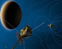 Magnetic Dance Of Titan And Saturn To Be Main Attraction During FlybyPasadena CA (SPX) Dec 14, 2009 When it flies by Saturn's largest moon, Titan, this weekend, NASA's Cassini spacecraft will study the interactions between the magnetic field of Saturn and Titan. The flyby will take place the evening of Dec. 11 California time, or shortly after midnight Universal Time on Dec. 12. As Titan plows through the magnetic bubble, or magnetosphere around Saturn, it creates a wake in the magnetic ... read more |