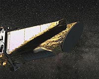 Washington DC (SPX) Apr 08, 2009 This artist's animation illustrates how the dust cover on NASA's Kepler telescope will be ejected. Engineers will send a command up to the space telescope to pass an electrical current through a "burn wire." The burn wire will break and a latch holding the cover closed will be released. The spring-loaded cover will swing open on a fly-away hinge, before drifting away from the spacecraft and entering its own orbit around the sun. (Kepler is also orbiting the sun in what's called an Earth-trailing orbit.) With the cover off, starlight will enter Kepler's science instrument, the photometer, and be imaged onto its focal plane. Engineers will continue to calibrate the instrument using images of stars for another several weeks, after which science observations will begin. Share This Article With Planet Earth