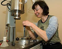 Laser-flash analysis Her technique, laser-flash analysis, provides much more accurate data on heat transport through rocks than conventional methods. In laser-flash analysis, a rock sample is held at a given temperature and then subjected to a laser pulse of heat, allowing Hofmeister to measure the time it takes for the heat to go from one end of the sample to the other. This measurement of thermal diffusivity, or how fast heat flows through matter, is another way to describe the thermal conductivity of a rock. Since measuring heat transport in the crust itself is impossible, Hofmeister used the laser to measure heat transport in individual rock samples at various temperatures and then averaged across samples to represent the dynamics of the crust. In collaboration with researchers from the University of Missouri - Columbia, Peter I. Nabelek, Ph.D., professor of geological sciences, and Alan G. Whittington, Ph.D., assistant professor of geological sciences, Hofmeister applied her findings to explain geological phenomena observed in the environment. The results, published in Nature on March 19, 2009, suggest that rock conductivity is not constant as was previously assumed, but instead varies strongly with temperature. Hofmeister explains, "Our analysis shows that rocks are more efficient at conducting heat at low temperatures than was previously thought and less efficient at high temperatures. The process of moving heat around really depends on the temperature of the rocks." Hofmeister and her collaborators found that the conductivity of rocks in the lower crust, where the external temperature is very high, is much lower - by as much as 50 percent - than was predicted by conventional methods. These results also suggest that the lower crust may be much hotter than scientists previously recognized. Since rocks become better insulators and poorer conductors at high temperatures, the lower crust acts like a blanket over the heat-generating mantle, the layer underlying the crust.