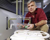 Atlanta GA (SPX) May 19, 2009 Researchers at the Georgia Institute of Technology have built a test facility to evaluate and enhance sensors designed to detect buried land mines. The unique automated system measures the response of individual electromagnetic induction sensors or arrays of sensors against land mines buried at many possible angles. Electromagnetic induction sensors work by sending out magnetic fields and detecting the response from the electric currents generated when the field interacts with a metallic target. While simple versions of these sensors are capable of detecting most land mines, advanced sensors are required to tell the difference between a land mine and harmless buried metal objects, which can include bottle tops, nails, shrapnel and spent bullets. "We built this facility to aid in the development of advanced electromagnetic induction sensors and associated detection algorithms, mainly because little was known about how the signals collected by these sensors from land mines changed when the mines were buried underground at odd angles," said Waymond Scott, a professor in Georgia Tech's School of Electrical and Computer Engineering. Scott and Gregg Larson, a senior research engineer in Georgia Tech's George W. Woodruff School of Mechanical Engineering, constructed the facility with funding from the U.S. Army and described it at the recent SPIE Defense, Security and Sensing Symposium. The testing structure was built with five computer-controlled axes - three translational stages and two rotational stages - and one manual axis. During testing, an individual sensor or array of sensors is fixed in the middle of the measurement region while the rotational stages orient a target and move it along a prescribed path around the sensor. For testing, the researchers place the sensor in the center of the area so that it is located as far as possible from any surrounding metal, including the floor that contains structural steel and the aluminum beams of the positioner frame. In the procedure used to measure individual targets, they also controlled for the response from the surrounding metal structures. The system can collect measurements of typical targets, including shell casings, wire loops, ball bearings and land mines. The data from each target is plotted as response curves, which are a function of the metal content and structure of the target and help discriminate a land mine from other metal buried in the ground. Previous field tests have shown that the shape of the response curves did not change when targets were buried at different depths, but the researchers wanted to know if the same was true for targets buried at different angles. "This facility allows us to collect measurements of typical targets and clutter objects with respect to location and orientation, which would be very difficult to measure in the field due to the difficulty of accurately placing and rotating the target," said Scott. At the symposium, the researchers presented data collected in the facility from three targets - a single wire loop, a composite target with three wire loops and a 9 millimeter shell casing. Their results with the single wire loop and shell casing showed that the shape of the response curve was the same for all of the rotation angles, but the amplitude of the response changed with rotation angle. The more complex three-loop target exhibited changes in the shape and amplitude of the curve when the rotation angle was modified. The researchers plan to use these results to make improvements to the sensor hardware and processing algorithms. Future efforts in the experimental facility will focus on measuring more targets and investigating methods for summarizing the massive amounts of collected data into simple physical models. The researchers also plan to improve the processing algorithms to help characterize more complicated targets and refine the detection and discrimination methods for electromagnetic induction sensors. Experiments conducted in the facility will ultimately help researchers better discriminate between land mines and harmless metal objects, which will lead to reduced false alarm rates. "This facility will help us develop advanced electromagnetic induction sensors that are most effective and able to quickly, accurately and repetitively measure the response of a buried target," noted Scott. This work is supported in part by the U.S. Army Night Vision and Electronic Sensors Directorate, Science and Technology Division, Countermine Branch and in part by the U. S. Army Research Office under Contract Number W911NF-05-1-0257. The views and conclusions contained in this document are those of the researchers and should not be interpreted as representing the official policies, either expressed or implied, of the Army Research Office or the U.S. Government. Share This Article With Planet Earth