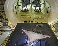 Hampton VA (SPX) Sep 21, 2009 A historic wind tunnel at NASA's Langley Research Center in Hampton, Va., has been pressed into service one last time to help test the prototype of a new, more fuel-efficient, quieter aircraft design. Boeing Research and Technology, Huntington Beach, Calif., recently partnered with NASA's Aeronautics Research Mission Directorate and the U.S. Air Force Research Laboratory, Wright Patterson Air Force Base, Ohio, to explore and validate the structural, aerodynamic and operational advantages of an advanced concept called the blended wing body or BWB. "We have one version of the 21-foot (6.4 m) wingspan BWB prototype, called the X-48B, being flight tested at NASA's Dryden Flight Research Center, in Edwards, Calif.," said Dan Vicroy, senior research engineer at NASA Langley. "The other one we just tested in the Langley Full-Scale Tunnel is the X-48C. It's been modified to make it even quieter. We're assessing the aerodynamic effects of those modifications." Those changes include reducing the number of engines from three to two and the installation of vertical fins to shield the engine noise. Cranfield Aerospace Ltd. in England built both ground-breaking aircraft scale models to Boeing's specifications. Made primarily of advanced lightweight composite materials, the models weigh about 500 pounds (227 kg) each. They are powered by turbojet engines and can fly up to 138 miles per hour (222 kph) and 10,000 feet (3,048 m) in altitude during flight-testing. The Air Force is interested in the plane's potential as a multi-role, long-range, high-capacity military aircraft. The Langley test in July and August 2009 was the second time a BWB model was put through its paces at the huge wind tunnel that was built in 1930 and used to test World War II fighters, the Mercury space capsule, and concepts for a supersonic transport. In 2006, preliminary tests helped engineers determine how the X-48B would perform during remotely piloted flight tests. Blended wing body designs are different from traditional tube-and-wing aircraft in that the tube and wings are blended for lower drag and better lift, and they rely primarily on multiple control surfaces on the wing for stability and control. "It was actually a big thrill for me to be back at the Langley Full-Scale Tunnel," said Dharmendra Patel, project manager for the X-48C at Boeing Research and Technology. "I think it's a big privilege that we were the last test here, that we get to be part of the history of the tunnel. But it is a little bittersweet that the facility will be closed down." Langley decommissioned the tunnel in 1995, and then leased it to Old Dominion University in Norfolk, Va., for research and student engineering training. That lease was up this summer and the tunnel is scheduled for demolition because of its lack of national strategic importance, limited testing capability, deteriorating condition and the environmental liability associated with the materials used in its construction. Share This Article With Planet Earth