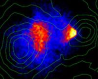 Copenhagen, Denmark (SPX) Oct 03, 2007 New research from the Niels Bohr Institute presents new information that adds another piece of knowledge to the jigsaw puzzle of the dark mystery of the universe - dark matter. The research has just been published in the scientific journal Physical Review Letters. The universe consists not just of visible celestial bodies, stars, planets and galaxies. It also has a mystical fellow player - dark matter. The astronomers can measure that the dark matter exists in big quantities but no one knows what it is, nobody has seen it. It does not emit light and it does not reflect light. It is invisible. It is a mystery and the researchers have many theories. The dark matter has caused the researchers headaches for decades since it was detected in the 1970s, and there is intense research into the phenomena. It is invisible but it has got mass, and thus it has got gravitation that can be measured. By analysing the galaxies it is possible to weigh them, and it turns out that by far the greatest matter of the collective mass of the galaxy is dark matter. Just like stars get together in galaxies, the galaxies get together in clusters of galaxies of up to several thousand galaxies. The astrophysicist Signe Riemer-Sorensen, PhD student at the Niels Bohr Institute, has analysed two clusters of galaxies that collide. Colliding clusters of galaxies are analysed When the two clusters of galaxies meet neither the galaxies nor the dark matter collide. However, about 12 per cent of the mass of the cluster of galaxies consists of huge clouds of gas and dust and these clouds collide. The gas clouds are hot and emit x-ray that can be observed, and it is possible to see how the clouds are actually pushed out of the two clusters of galaxies at the collision. When the clouds of gas collide they become even hotter and emit more x-ray so that a whole chock front of warn gas is generated. Observations indicate that the dark matter can be a new and still undetected type of particle. Among the suggestions for the dark matter, are particles that when they decay they emit x-ray. One is the so called axions that are particles which is explained in theories with extra dimensions. So to be able to look for x-ray from dark matter the researchers are looking in places where there is a big concentration of dark matter, but no gas. Such places are found in the two colliding clusters of galaxies where the gas clouds have been pushed out at the collision. Signe Riemer-Sorensen has analysed the one of the two clusters of galaxies that are in the process of colliding. The analyses show that it is a very heavy cluster with many galaxies, and measurement of the gravitation show that there is a very big amount of dark matter, up to 85 per cent of the collective mass. However, no x-ray of any consequence was measured. When the dark matter does not emit significant x-ray it is possible to calculate an upper limit to how quickly the particles decay and thus calculate their lifetime. The result is that if axions are to be the dark matter they must have a life span that is longer that 3.000.000 billion years. In that case there is not very much dark matter that has decayed yet if it was formed 13.7 billion years ago. The conclusion is that dark matter has a very, very long lifetime. Community Email This Article Comment On This Article Related Links University of Copenhagen Stellar Chemistry, The Universe And All Within It