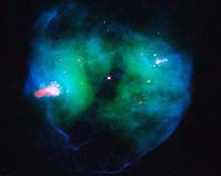 Baltimore MD (SPX) Mar 05, 2008 Probing a glowing bubble of gas and dust encircling a dying star, NASA's Hubble Space Telescope reveals a wealth of previously unseen structures. The object, called NGC 2371, is a planetary nebula, the glowing remains of a sun-like star. The remnant star visible at the center of NGC 2371 is the super-hot core of the former red giant, now stripped of its outer layers. Its surface temperature is a scorching 240,000 degrees Fahrenheit. NGC 2371 lies about 4,300 light-years away in the constellation Gemini. The Hubble image reveals several remarkable features, most notably the prominent pink clouds lying on opposite sides of the central star. This color indicates that they are relatively cool and dense, compared to the rest of the gas in the nebula. Also striking are the numerous, very small pink dots, marking relatively dense and small knots of gas, which also lie on diametrically opposite sides of the star. These features appear to represent the ejection of gas from the star along a specific direction. The jet's direction has changed with time over the past few thousand years. The reason for this behavior is not well understood, but might be related to the possible presence of a second star orbiting the visible central star. A planetary nebula is an expanding cloud of gas ejected from a star that is nearing the end of its life. The nebula glows because of ultraviolet radiation from the hot remnant star at its center. In only a few thousand years the nebula will dissipate into space. The central star will then gradually cool down, eventually becoming a white dwarf, the final stage of evolution for nearly all stars. The Hubble picture of NGC 2371 is a false-color image, prepared from exposures taken through filters that detect light from sulfur and nitrogen (red), hydrogen (green), and oxygen (blue). These images were taken with Hubble's Wide Field Planetary Camera 2 in November 2007, as part of the Hubble Heritage program. Community Email This Article Comment On This Article Related Links Stellar Chemistry, The Universe And All Within It