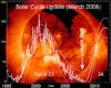 Huntsville AL (SPX) Mar 31, 2008Solar Cycle 23, how can we miss you if you won't go away? Barely three months after forecasters announced the beginning of new Solar Cycle 24, old Solar Cycle 23 has returned. (Actually, it never left. Read on.) "This week, three big sunspots appeared and they are all old cycle spots," says NASA solar physicist David Hathaway. "We know this because of their magnetic polarity." |