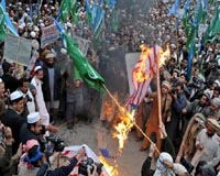 Peshawar, Pakistan (AFP) Dec 18, 2008 Thousands of protesters rallied in the northwestern Pakistani city of Peshawar on Thursday, demanding that Islamabad end its logistical support for US and NATO troops in Afghanistan. The crowd of about 5,000 demonstrators chanted "Allahu akbar" (God is greater), "Crush America" and "No to NATO supplies" as they marched through Peshawar, an AFP correspondent witnessed. The rally came amid a recent spike in attacks by Taliban militants on NATO and US supply depots on Peshawar's outskirts, close to Pakistan's lawless tribal areas -- a hotbed of Taliban and Al-Qaeda activity. International forces in Afghanistan are hugely dependent on Islamabad for their supplies and equipment, with about 80 percent transported through Pakistan and then across the border. The chief of the radical Jamaat-i-Islami party, Qazi Hussain Ahmad, told protesters: "It is a shame for an Islamic country to supply logistics to the US, which is working against the interests of Muslims all over the world." He demanded the government abandon its role as an ally in the US-led "war on terror", warning that if logistical support is not suspended, "we will force the government with public support to halt all supplies." On Wednesday, missiles fired by suspected Taliban militants targeting a NATO supply convoy killed a woman and wounded her two children in the Khyber tribal district, on the main supply route into Afghanistan. Share This Article With Planet Earth