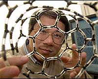 Upton NY (SPX) Sep 11, 2007 Scientists at the U.S. Department of Energy's Brookhaven National Laboratory have developed new ways to make or modify nanorods and nanotubes of titanium oxide, a material used in a variety of industrial and medical applications. The methods and new titanium oxide materials may lead to improved catalysts for hydrogen production, more efficient solar cells, and more protective sunscreens. In the first study, the scientists enhanced the ability of titanium oxide to absorb light. "Titanium dioxide's ability to absorb light is one the main reasons it is so useful in industrial and medical applications," said Wei-Qiang Han, a scientist at Brookhaven's Center for Functional Nanomaterials (CFN) and lead author on both papers. It is used as a photocatalyst for converting sunlight to electricity in solar cells and also has applications in the production of hydrogen, in gas sensors, in batteries, and in using sunlight to degrade some environmental contaminants. It is also a common ingredient in sunscreen. Many scientists have explored ways to improve the light-absorbing capability of titanium oxide, for example, by "doping" the material with added metals. Han and his coworkers took a new approach. They enhanced the material's light-absorption capability by simply introducing nanocavities, completely enclosed pockets measuring billionths of a meter within the 100-nanometer-diameter solid titanium oxide rods. The resulting nanocavity-filled titanium oxide nanorods were 25 percent more efficient at absorbing certain wavelengths of ultraviolet A (UVA) and ultraviolet B (UVB) solar radiation than titanium oxide without nanocavities. "Our research demonstrates that titanium oxide nanorods with nanocavities can dramatically improve the absorption of UVA and UVB solar radiation, and thus are ideal new materials for sunscreen," Han said. The cavity-filled nanorods could also improve the efficiency of photovoltaic solar cells and be used as catalysts for splitting water and also in the water-gas-shift reaction to produce pure hydrogen gas from carbon monoxide and water. The method for making the cavity-filled rods is simple, says Han. "We simply heat titanate nanorods in air. This process evaporates water, transforming titanate to titanium oxide, leaving very densely spaced, regular, polyhedral nanoholes inside the titanium oxide." In the second paper, Han and his collaborators describe a new synthesis method to make iron-doped titanate nanotubes, hollow tubes measuring approximately 10 nanometers in diameter and up to one micrometer (one millionth of a meter) long. These experiments were also aimed at improving the material's photoreactivity. The scientists demonstrated that the resulting nanotubes exhibited noticeable reactivity in the water-gas-shift reaction. "Although the activity of the iron-doped nanotubes was not as good as that of titanium oxide loaded with metals such as platinum and palladium, the activity we observed is still remarkable considering that iron is a much less expensive metal and its concentration in our samples was less than one percent," Han said. The scientists also observed interesting magnetic properties in the iron-doped nanotubes, and will follow up with future studies aimed at understanding this phenomenon. Materials developed in these studies were analyzed using several of Brookhaven Lab's unique tools and methods for the characterization of nanostructures, including transmission electron microscopy and various techniques using x-ray and infrared beams at the Lab's National Synchrotron Light Source (NSLS). This research, which has clear connections to improved energy technologies, was funded by the Office of Basic Energy Sciences within the U.S. Department of Energy's Office of Science. Collaborators on the Advanced Materials paper include Lijun Wu, Robert F. Klie, and Yimei Zhu, all of Brookhaven's Center for Functional Nanomaterials (CFN). For the Journal of Physical Chemistry paper, collaborators include Brookhaven chemists Wen Wen and Jonathan Hanson; Ding Yi, Mathew Maye, and Oleg Gang of the CFN; Zhenxian Liu of the Carnegie Institution of Washington; and Laura Lewis, formerly at the CFN and now at Northeastern University. Community Email This Article Comment On This Article Related Links Powering The World in the 21st Century at Energy-Daily.com