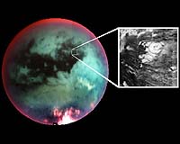 Pasadena CA (SPX) Dec 17, 2008 Data collected during several recent flybys of Titan by NASA's Cassini spacecraft have put another arrow in the quiver of scientists who think the Saturnian moon contains active cryovolcanoes spewing a super-chilled liquid into its atmosphere. The information was released during a meeting of the American Geophysical Union in San Francisco, Calif. "Cryovolcanoes are some of the most intriguing features in the solar system," said Rosaly Lopes, a Cassini radar team investigation scientist from NASA's Jet Propulsion Laboratory in Pasadena, Calif. "To put them in perspective - if Mount Vesuvius had been a cryovolcano, its lava would have frozen the residents of Pompeii." Rather than erupting molten rock, it is theorized that the cryovolcanoes of Titan would erupt volatiles such as water, ammonia and methane. Scientists have suspected cryovolcanoes might inhabit Titan, and the Cassini mission has collected data on several previous passes of the moon that suggest their existence. Imagery of the moon has included a suspect haze hovering over flow-like surface formations. Scientists point to these as signs of cryovolcanism there. "Cassini data have raised the possibility that Titan's surface is active," said Jonathan Lunine, a Cassini interdisciplinary scientist from the Lunar and Planetary Laboratory, University of Arizona, Tucson. "This is based on evidence that changes have occurred on the surface of Titan, between flybys of Cassini, in regions where radar images suggest a kind of volcanism has taken place." What led some Cassini scientists to believe that things are happening now were changes in brightness and reflectance detected at two separate and distinct regions of Titan. Reflectance is the ratio of light that radiates onto a surface to the amount reflected back. These changes were documented by Visible and Infrared Mapping Spectrometer data collected on Titan flybys from July 2004 to March 2006. In one of the two regions, the reflectance of the surface surged upward and remained higher than expected. In the other region, the reflectance shot up but then trended downward. There is also evidence that ammonia frost is present at one of the two changing sites. The ammonia was evident only at times when the region was inferred to be active. "Ammonia is widely believed to be present only beneath the surface of Titan," said Robert M. Nelson of JPL, a scientist for Cassini's Visual and Infrared Mapping Spectrometer team. "The fact that we found it appearing at times when the surface brightened strongly suggests that material was being transported from Titan's interior to its surface." Some Cassini scientists indicate that such volcanism could release methane from Titan's interior, which explains Titan's seemingly continuous supply of fresh methane. Without replenishment, scientists say, Titan's original atmospheric methane should have been exhausted long ago. But other scientists familiar with the spectrometer data argue that the ammonia identification is not certain, and that the purported brightness changes might not be associated with changes on Titan's surface. Instead they might result from the transient appearances of ground "fogs" of ethane droplets very near Titan's surface, driven by atmospheric rather than geophysical processes. Nelson has considered the ground fog option, stating, "There remains the possibility that the effect is caused by a local fog, but if so, we would expect it to change in size over time due to wind activity, which is not what we see." The chilly volcanoes of Titan are not a fait accompli. An alternative hypothesis to an active Titan suggests the Saturnian moon could be taking its landform evolution cues from a moon of Jupiter. "Like Callisto, Titan may have formed as a relatively cold body, and may have never undergone enough tidal heating for volcanism to occur," said Jeffrey Moore, a planetary geologist at the NASA Ames Research Center, Moffett Field, Calif. "The flow-like features we see on the surface may just be icy debris that has been lubricated by methane rain and transported downslope into sinuous piles like mudflows." More revelations may be forthcoming. Scientists are still analyzing the data from Cassini's most recent flyby on Dec. 5. Cassini's next Titan flyby is scheduled in 11 days, when the spacecraft will come within 970 kilometers (603 miles) of its cloud-shrouded surface. Share This Article With Planet Earth