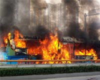 More than 40 injured in China bank blastBeijing (AFP) May 13, 2011 More than 40 people were injured Friday when a disgruntled former employee set off a petrol bomb at a bank in a Tibetan-inhabited region of northwest China, authorities said. The attack started a fire at the Agriculture Credit Cooperative in Huazangsi, Gansu province, according to a statement issued by local officials. Of the injured, 19 were in serious condition. The former employee, id ... read more |