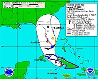 Havana (AFP) Aug 17, 2008 Tropical storm Fay bore down on Cuba Sunday after leaving five dead and one missing in the Dominican Republic and Haiti, as Florida declared an emergency and ordered tourists to leave the popular southern Keys. The Miami-based US National Hurricane Center warned Sunday that Fay, already packing winds of up to 85 kilometers (50 miles) an hour, could evolve into a hurricane in the coming hours and dump several inches of rain over Cuba, Jamaica and the Cayman Islands before lashing Florida on Monday. It forecast Fay could soon be packing hurricane-strength winds of 120 kilometers (75 miles) an hour, and placed a hurricane warning on parts of Cuba, islands off the southern tip of Florida and halfway up Florida's west coast. "Fay could be approaching hurricane strength when it reaches western Cuban tonight and when it approaches the Florida Keys Monday," the advisory said. At 2100 GMT the storm's center was located 335 kilometers (205 miles) southeast of Havana and 435 kilometers (270 miles) southeast of Key West, Florida. It was moving west-northwest at 24 kilometers (15 miles) per hour. Authorities in the popular tourist spot of the Florida Keys archipelago, which comprises hundreds of islands, have ordered all visitors to evacuate and told residents to secure their homes and property, including boats. Residents in mobile homes and those living on boats were also told to evacuate. The main highway linking the Keys to the mainland was choked with traffic as visitors rushed to leave, Monroe County Sheriff's office spokeswoman Becky Herrin told AFP. "There's no order for residents to evacuate the area, we have to wait and see the situation before taking more measures," she added. Florida Governor Charlie Crist declared a state of emergency in the area. Shelters were to open later Sunday and all schools in the Monroe County area, which includes Key West, lying just 150 kilometers (95 miles) from Cuba, were to be closed on Monday and Tuesday. In mainland Miami meanwhile, residents began descending on gas stations and supermarkets to fill up gas tanks and stock up on bottled water and food supplies. Cuban authorities said Sunday that more than 10,000 people living in the path of the storm had been evacuated, as heavy wind and rain began battering the eastern coast. "The eye of the storm will make landfall somewhere between Matanzas and Cienfuegos," said Meteorological Institute Forecast Center director Jose Rubiera. Rubiera, the director of Cuba's weather center, warned of the danger of "tidal waves" with probability of flooding in the eastern provinces of Granma, Santiago de Cuba and Guantanamo. "The most important thing for our country continues to be the rains brought by the tropical storm," the center said, as its warnings interrupted the normal television and radio broadcasts. All Cuban domestic flights have been suspended, and civil defense authorities were closely monitoring the levels of rivers and dams amid fears of severe flooding. After crossing Cuba, Fay is expected to dump as much as 10 inches (25 centimeters) of rain in areas of Florida. The storm, the sixth of the Atlantic hurricane season, has already brought misery to other islands. Authorities in the Dominican Republic said four people had died in the storm, including two young brothers swept away when the river Higuey broke its banks. Some 11,760 people were evacuated, and power was cut to some 15,000 homes, local media said. Five bridges were also damaged and several roadways snapped. In Haiti, the heavy rains killed one person in the north and another was missing in the south, civil protection officials told AFP. Community Email This Article Comment On This Article Related Links Bringing Order To A World Of Disasters When the Earth Quakes A world of storm and tempest